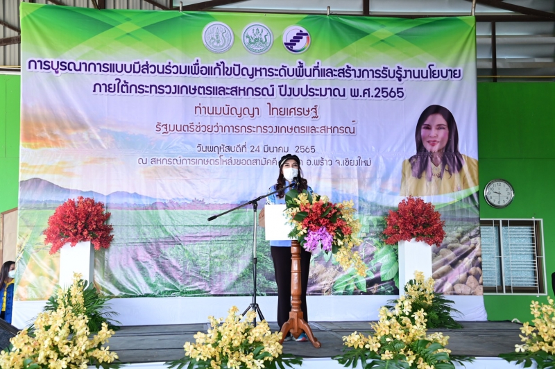 รมช.มนัญญา ยังได้กล่าวชื่นชมสหกรณ์การเกษตรโหล่งขอดสามัคคี จำกัด และสหกรณ์ในจังหวัดเชียงใหม่ ที่ให้ความสำคัญและให้ความร่วมมือในการดำเนินการตามนโยบายต่าง ๆ ของกระทรวงเกษตรและสหกรณ์ รวมถึงนโยบายที่สำคัญของกรมส่งเสริมสหกรณ์ด้วยดีเสมอมา เช่น โครงการปรับโครงสร้างการผลิต การรวบรวม และการแปรรูปของสถาบันเกษตรกร รองรับผลผลิตทางการเกษตร เพื่อส่งเสริมและผลักดันให้สหกรณ์แม่ข่าย สหกรณ์ลูกข่ายขั้นกลาง และขั้นต้น เป็นศูนย์กลางในการรวบรวมจัดเก็บและแปรรูป จำหน่าย กระจายผลผลิตทางการเกษตรในพื้นที่ให้เกิดการเชื่อมโยงเครือข่ายระหว่างสหกรณ์ด้วยกัน มีการให้บริการสมาชิกเพื่อลดต้นทุน และสร้างรายได้ให้กับสมาชิกสหกรณ์ รวมถึงลดการใช้สารเคมีอันตรายและส่งเสริมให้มีการผลิต การตลาด สินค้าเกษตรปลอดภัย โครงการลูกหลานเกษตรกรกลับบ้าน สานต่ออาชีพการเกษตร เพื่อสนับสนุนให้ลูกหลานสมาชิกสหกรณ์ หรือบุคคลทั่วไปที่ไปประกอบอาชีพต่างจังหวัดกลับมาทำการเกษตรที่บ้านเกิด โดยมีสหกรณ์การเกษตรในพื้นที่คอยเป็นพี่เลี้ยง ตลอดจนการจัดหาตลาดรองรับ นโยบายตลาดนำการผลิตเพื่อพัฒนาและยกระดับคุณภาพสินค้าเกษตรให้มีคุณภาพเป็นไปตามความต้องการของตลาด หรือผู้บริโภคปลายทาง โครงการซูเปอร์มาร์เก็ตสหกรณ์ เพื่อเพิ่มช่องทางการจำหน่ายสินค้าเกษตร ส่งเสริมให้มีการเชื่อมโยงสินค้าเกษตร ทั้งในพื้นที่และนอกพื้นที่ รวมถึงเครือข่ายสหกรณ์ด้วยกันเอง ขอเชิญชวนสหกรณ์ทุกแห่งร่วมกันพัฒนาสหกรณ์ ให้มีความเข้มแข็ง ช่วยกันส่งเสริมการผลิตสินค้าเกษตรให้เป็นสินค้าเกษตรปลอดภัย มีคุณภาพ ลดการใช้สารเคมี ช่วยกันขับเคลื่อนงาน เพื่อให้สมาชิกสหกรณ์มีความเป็นอยู่ที่ดีขึ้น มีรายได้เพิ่มและมีความมั่นคงในอาชีพ อีกทั้งให้มีการวางแผนการใช้ประโยชน์ จากโครงการที่รัฐบาลให้งบประมาณสนับสนุนให้เต็มศักยภาพ