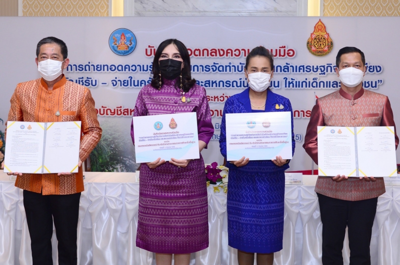 นางสาวมนัญญา ไทยเศรษฐ์ รัฐมนตรีช่วยว่าการกระทรวงเกษตรและสหกรณ์ พร้อมด้วย นางกนกวรรณ วิลาวัลย์ รัฐมนตรีช่วยว่าการกระทรวงศึกษาธิการ ร่วมให้เกียรติเป็นประธานในพิธีลงนามบันทึกข้อตกลงความร่วมมือ (MOU) “การถ่ายทอดความรู้เกี่ยวกับการจัดทำบัญชีต้นกล้าเศรษฐกิจพอเพียง บัญชีรับ – จ่ายในครัวเรือน และสหกรณ์นักเรียน ให้แก่เด็กและเยาวชน” ระหว่าง กรมตรวจบัญชีสหกรณ์ กระทรวงเกษตรและสหกรณ์ และสำนักงานคณะกรรมการการศึกษาขั้นพื้นฐาน (สพฐ.) กระทรวงศึกษาธิการ โดยมี นายอำพันธุ์ เวฬุตันติ อธิบดีกรมตรวจบัญชีสหกรณ์ นายพัฒนะ พัฒนทวีดล รองเลขาธิการคณะกรรมการการศึกษาขั้นพื้นฐาน ลงนามในบันทึกข้อตกลงดังกล่าว ณ ห้อง 115 กระทรวงเกษตรและสหกรณ์