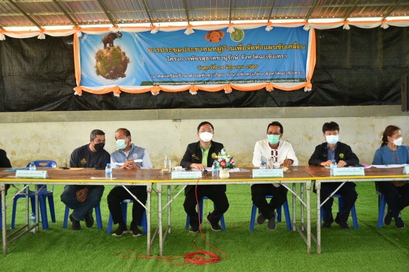 นายสมชวน รัตนมังคลานนท์ รองปลัดกระทรวงเกษตรและสหกรณ์ เป็นประธานเปิดการประชุมประชาคมหมู่บ้าน เพื่อจัดทำแผนขับเคลื่อนโครงการพัชรสุธาคชานุรักษ์ จังหวัดฉะเชิงเทรา โดยมีคณะทำงานขับเคลื่อนโครงการพัชรสุธาคชานุรักษ์ หน่วยงานในสังกัดกระทรวงเกษตรและสหกรณ์ของจังหวัดฉะเชิงเทราและจังหวัดที่เกี่ยวข้อง ผู้นำท้องถิ่น และเกษตรกรในพื้นที่เป้าหมาย เข้าร่วม ณ ตลาดร้อยร้าน อำเภอท่าตะเกียบ ตำบลท่าตะเกียบ จังหวัดฉะเชิงเทรา มีวัตถุประสงค์เพื่อรับฟังข้อมูลความต้องการปรับเปลี่ยนและพัฒนาอาชีพของเกษตรกรเพื่อลดผลกระทบจากภัยช้างป่า รวมทั้งปัญหา อุปสรรคของเกษตรกรในพื้นที่หมู่บ้านคชานุรักษ์ และหมู่บ้านขยายผล รวม 9 หมู่บ้าน เพื่อใช้เป็นข้อมูลในการบูรณาการกำหนดแผนปฏิบัติงานการขับเคลื่อนโครงการพัชรสุธาคชานุรักษ์ของหน่วยงานในสังกัดกระทรวงเกษตรและสหกรณ์ ให้สอดคล้องกับบริบทของพื้นที่ และเป็นไปตามความต้องการของชุมชนอย่างแท้จริง