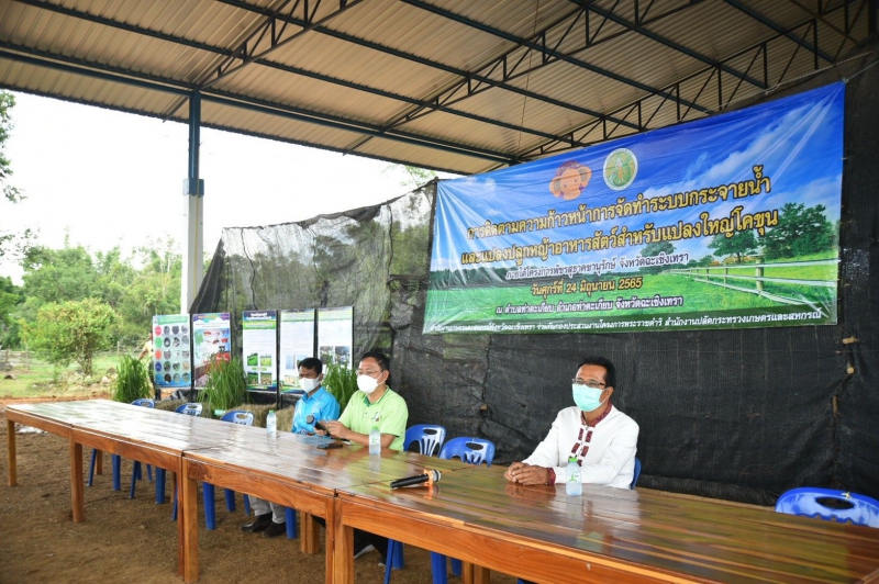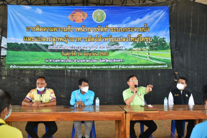 จากนั้นรองปลัดกระทรวงเกษตรและสหกรณ์ได้ลงพื้นที่ติดตามผลการดำเนินงานโครงการ/กิจกรรม ของจังหวัดฉะเชิงเทรา ในพื้นที่แปลงใหญ่โคขุน ต.ท่าตะเกียบ อ.ท่าตะเกียบ พร้อมทั้งติดตามการดำเนินโครงการส่งน้ำและบำรุงรักษาคลองสียัด ชมนิทรรศการและรับฟังรายงานแผนการจัดทำระบบกระจายน้ำสำหรับแปลงหญ้าอาหารสัตว์ และติดตามการดำเนินงานของศูนย์วิจัยและพัฒนาอาหารสัตว์ จังหวัดสระแก้ว ชมนิทรรศการและรับฟังรายงานการจัดทำแปลงหญ้าอาหารสัตว์สำหรับกลุ่มแปลงใหญ่โคขุน