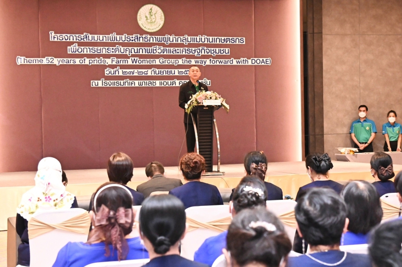 ดร.เฉลิมชัย ศรีอ่อน รัฐมนตรีว่าการกระทรวงเกษตรและสหกรณ์ เป็นประธานพิธีเปิดสัมมนาเพิ่มประสิทธิภาพผู้นำกลุ่มแม่บ้านเกษตรกร เพื่อการยกระดับคุณภาพชีวิตและเศรษฐกิจชุมชน ที่จัดขึ้นระหว่างวันที่ 27 – 28 กันยายน 2565 ณ โรงแรมทีเค พาเลซ แอนด์ คอนเวนชั่น เพื่อให้ผู้นำกลุ่มแม่บ้านเกษตรกรและเจ้าหน้าที่ได้รับทราบนโยบายของรัฐบาลในการพัฒนาบทบาทของสตรีในภาคการเกษตรของประเทศไทย เสริมสร้างศักยภาพของผู้นำกลุ่มแม่บ้านเกษตรกรให้มีความพร้อมในการเข้าสู่ตลาดออนไลน์และตลาดโมเดิร์นเทรด ได้มาพบปะเพื่อแลกเปลี่ยนองค์ความเรียนรู้ ประสบการณ์ การเชื่อมโยงเครือข่าย และศึกษาดูงานผลสำเร็จของกลุ่มแม่บ้านเกษตรกรทั่วประเทศ ตลอดจนเพื่อยกย่อง เชิดชูเกียรติ และสร้างขวัญกำลังใจให้แก่ผู้นำกลุ่มแม่บ้านเกษตรกรเพื่อนำความรู้และประสบการณ์ไปประยุกต์ใช้ในการประกอบอาชีพการเกษตร และการปฏิบัติงานในพื้นที่ได้อย่างมีประสิทธิภาพยิ่งขึ้น