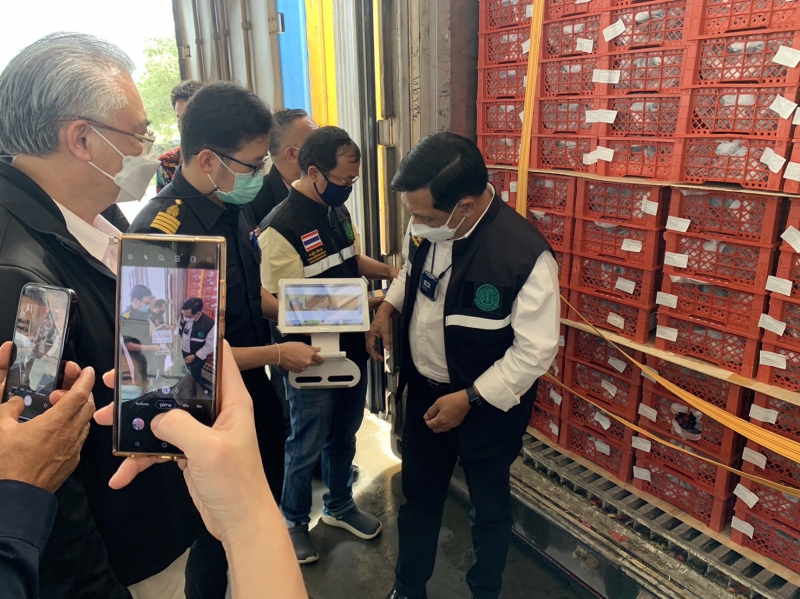 “ดร.เฉลิมชัย ศรีอ่อน รมว.เกษตรฯ และนายจุรินทร์ ลักษณวิศิษฏ์ รองนายกฯ และ รมว.พาณิชย์ ไม่ได้นิ่งนอนใจได้ประสานความร่วมมือกับประเทศที่เกี่ยวข้องตั้งแต่เกิดปัญหาด่านติดขัดรุนแรงในช่วงเดือนพฤศจิกายนและธันวาคมที่ผ่านมา จนสถานการณ์เริ่มดีขึ้น และขอความร่วมมือผู้ประกอบการส่งออกให้ยึดแนวปฏิบัติการป้องกันการปนเปื้อนเชื้อโควิด-19 อย่างเคร่งครัดหากด่านจีนตรวจพบเชื้อโควิด-19 ในตู้สินค้าปิดด่านทันที อย่างไรก็ตาม ปี 2564 แม้จะเผชิญปัญหาด่านติดจัดและตู้ขนส่งสินค้าขาดแคลนรวมทั้งค่าระวางเรือขึ้นสูงมากแต่เราสามารถส่งออกผลไม้ไปจีนสูงสุดเป็นประวัติการณ์เพียง 11 เดือน ในปี 2564 มีมูลค่ากว่า 1.5 แสนล้านบาท และครองส่วนแบ่งในตลาดจีนเป็นอันดับหนึ่ง มีมาร์เก็ตแชร์ถึง 45% จึงขอให้ทุกภาคส่วนร่วมมือกันในการขยายการส่งออกผลไม้ให้เพิ่มขึ้นจากปี 2564” นายอลงกรณ์กล่าวในที่สุด