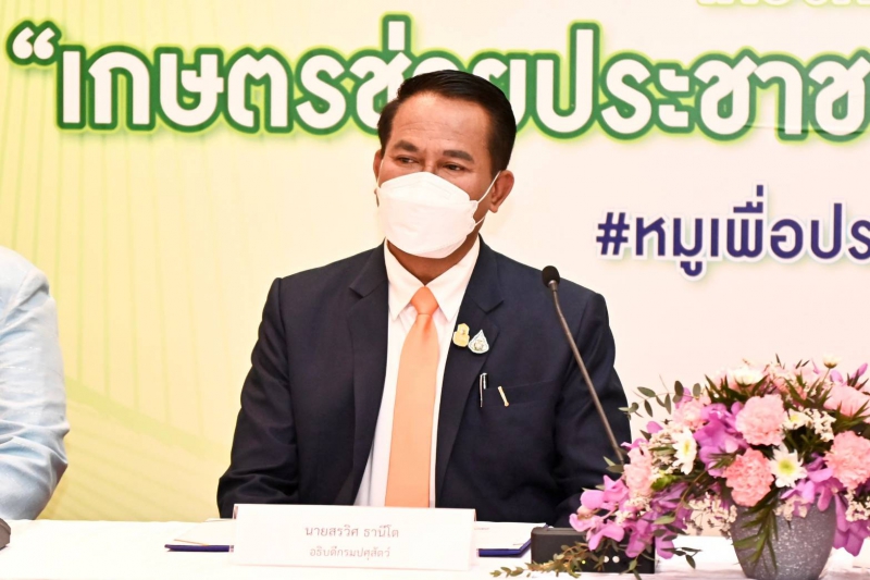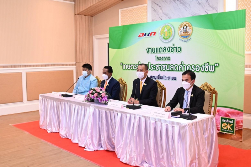 รัฐมนตรีว่าการกระทรวงเกษตรและสหกรณ์ กล่าวว่า จากสถานการณ์ราคาหมูแพง ซึ่งส่งผลกระทบต่อหลายภาคส่วน โดยเฉพาะกับประชาชนผู้บริโภค รวมไปถึงผู้ประกอบการร้านอาหาร ที่ต่างได้รับความเดือดร้อน จากปัญหาราคาเนื้อหมูที่ปรับตัวสูงขึ้น กระทรวงเกษตรและสหกรณ์ โดยกรมปศุสัตว์ และองค์การตลาดเพื่อเกษตรกร (อ.ต.ก.) จึงได้จัดโครงการ “เกษตรช่วยประชาชนลดค่าครองชีพ” ที่กำหนดจัดขึ้นระหว่างวันที่ 12 - 19 กุมภาพันธ์ 2565 หรือจนกว่าสินค้าจะหมด ณ ลานกิจกรรมตลาดริมน้ำ อ.ต.ก. เลียบคลองบางซื่อ ถ.พหลโยธิน เขตจตุจักร กทม. เพื่อเป็นการช่วยเหลือประชาชน ลดภาระค่าใช้จ่าย และบรรเทาความเดือดร้อนจากสภาวะเศรษฐกิจในปัจจุบัน ด้วยการจัดจำหน่ายหมูเพื่อประชาชน ซึ่งเป็นหมูเนื้อแดง คุณภาพดี การันตีด้วยมาตรฐานปศุสัตว์ OK ในราคาถูกกว่าท้องตลาด เพียงกิโลกรัมละ 140 บาท ซึ่งจะนำมาจำหน่ายที่ตลาด อ.ต.ก. จำนวน 150,000 กิโลกรัม โดยกำหนดซื้อได้คนละไม่เกิน 5 กิโลกรัม เพื่อให้ทั่วถึงกันทุกคน