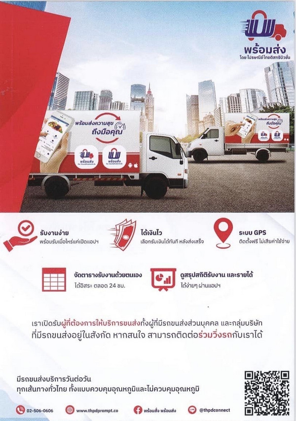 บริษัท ไปรษณีย์ไทยดิสทริบิวชั่น จำกัด ดำเนินการพัฒนาแอปพลิเคชัน “พร้อมสั่ง” และ “พร้อมส่ง” เพื่อสนับสนุน เกษตรกร วิสาหกิจชุมชน และกลุ่มผู้ผลิตสินค้า OTOP (1 ตำบล 1 ผลิตภัณฑ์) ให้เข้าถึงสินค้าได้ง่าย และสนับสนุนการสร้างงานให้กับภาครถขนส่งรายย่อย ให้มีรายได้จากการขนส่ง