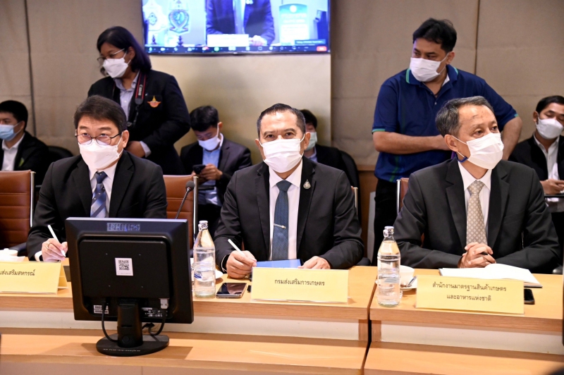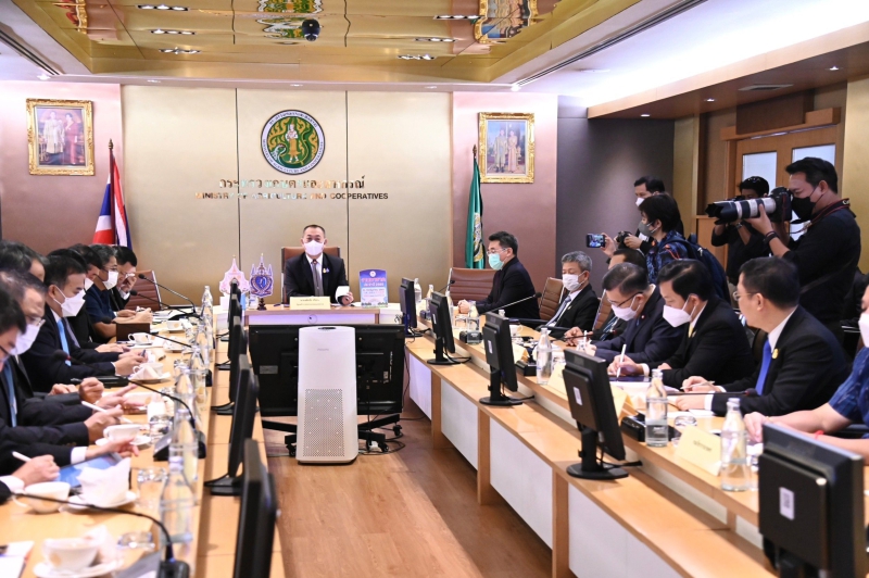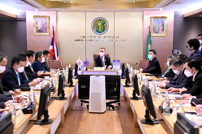 ดร.เฉลิมชัย ศรีอ่อน รัฐมนตรีว่าการกระทรวงเกษตรและสหกรณ์ เป็นประธานการประชุมขับเคลื่อนการดำเนินงานของกระทรวงเกษตรและสหกรณ์ในปี 2566 ที่ยังคงเน้นย้ำนโยบายหลัก 15 ด้าน ได้แก่ 1) นโยบาย “ตลาดนำการผลิต” 2) การสร้างความเข้มแข็งให้สถาบันเกษตรกรและเศรษฐกิจฐานราก 3) การส่งเสริมสถาบันเกษตรกร ผู้ประกอบการ และ Start Up 4) การส่งเสริมเกษตรพันธสัญญา (Contract Farming) 5) การพัฒนาศูนย์เทคโนโลยีเกษตรและนวัตกรรม (AIC) 6) การพัฒนาระบบโลจิสติกส์ด้านการเกษตร 7) การบริหารจัดการน้ำอย่างเป็นระบบ 8) การบริหารจัดการพื้นที่เกษตรกรรม 9) การส่งเสริมศูนย์เรียนรู้การเพิ่มประสิทธิภาพการผลิตสินค้าเกษตร (ศพก.) 10) การประกันภัยพืชผล 11) การส่งเสริมเกษตรกรรมยั่งยืน 12) การยกระดับขีดความสามารถในการแข่งขัน 13) การวิจัยและพัฒนา 14) การพัฒนาฐานข้อมูล Big Data ข้อมูลพื้นที่ระบาดโรคใบด่างมันสำปะหลัง 15) การประกันรายได้