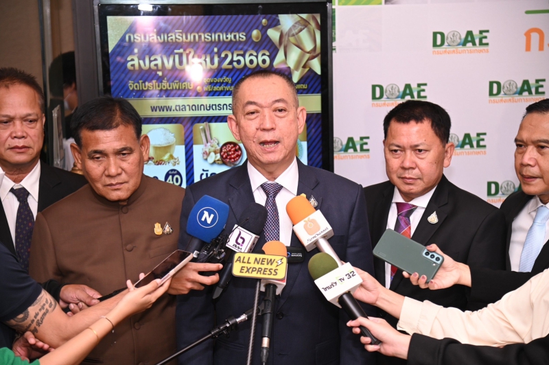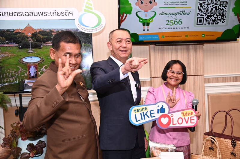 ดร.เฉลิมชัย ศรีอ่อน รัฐมนตรีว่าการกระทรวงเกษตรและสหกรณ์เป็นประธานแถลงข่าว “โครงการส่งความสุขปีใหม่ มอบให้เกษตรกร กระทรวงเกษตรและสหกรณ์ ปี พ.ศ. 2566” โดยมีนายสุนทรปานแสงทองรัฐมนตรีช่วยว่าการกระทรวงเกษตรและสหกรณ์นายอลงกรณ์ พลบุตร ที่ปรึกษารัฐมนตรีว่าการกระทรวงเกษตรและสหกรณ์ นายธนา ชีรวินิจ เลขานุการรัฐมนตรีว่าการกระทรวงเกษตรและสหกรณ์นายนราพัฒน์แก้วทองผู้ช่วยรัฐมนตรีประจำกระทรวงเกษตรและสหกรณ์ นายสมเกียรติ กอไพศาล ประธานคณะทำงานรัฐมนตรีว่าการกระทรวงเกษตรและสหกรณ์ นายประยูร อินสกุล ปลัดกระทรวงเกษตรและสหกรณ์ และผู้บริหารกระทรวงเกษตรและสหกรณ์ เข้าร่วม ณ ห้องประชุมกระทรวงเกษตรและสหกรณ์ ซึ่งการจัดงานดังกล่าว กระทรวงเกษตรฯ ได้จัดเตรียมของขวัญปีใหม่จากทุกหน่วยงานในสังกัด มอบให้เกษตรกรและประชาชนทั้งรูปแบบสินค้าและบริการ ซึ่งจะเป็นการส่งความสุขตลอดเวลาประมาณ 1 เดือน ระหว่างวันที่ 15 ธันวาคม 2565 ถึงวันที่ 16 มกราคม 2566 นอกจากจะเป็นการส่งมอบผลิตภัณฑ์เกษตรคุณภาพแล้วยังช่วยกระตุ้นเศรษฐกิจในประเทศให้เกิดการใช้จ่าย จากการซื้อผลผลิตทางการเกษตรทั้งสดและแปรรูป ผลิตภัณฑ์นวัตกรรมเกษตร รวมไปถึงผลิตภัณฑ์ของใช้ ซึ่งล้วนแต่เป็นสินค้าที่ได้คุณภาพมาตรฐาน ส่งตรงจากพี่น้องเกษตรกรจากทุกภาคทั่วประเทศไทย นอกจากนี้ ยังส่งมอบความสุข จากการเยี่ยมชมสถานที่ท่องเที่ยวเชิงนิเวศเกษตรที่สวยงาม และได้รับความรู้ด้านการเกษตรด้วย โดยคาดว่าจะมีประชาชนและเกษตรกรได้รับประโยชน์จากทั้ง 2 กิจกรรม กว่า 366,680 ราย