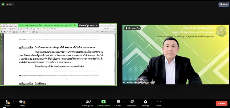 วันพฤหัสบดีที่ 23 มีนาคม พ.ศ. 2566 เวลา 13.30 น. นายเศรษฐเกียรติ กระจ่างวงษ์ รองปลัดกระทรวงเกษตรและสหกรณ์ เป็นประธานในการประชุมคณะกรรมการพิจารณาขอพระราชทานเครื่องราชอิสริยาภรณ์ ประจำปีของสำนักงานรัฐมนตรี และสำนักงานปลัดกระทรวงเกษตรและสหกรณ์ ครั้งที่ 1/2566 ผ่านการประชุมออนไลน์ (Zoom Meeting)
