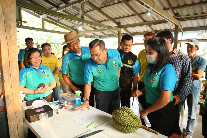 2) มาตรการควบคุมและป้องกันแก้ไขปัญหาทุเรียนด้อยคุณภาพ ด้วยการกำกับการตรวจวัดเปอร์เซ็นต์เนื้อในน้ำหนักแห้ง โดยพันธุ์กระดุมต้องมีค่าเฉลี่ยของเปอร์เซ็นต์น้ำหนักแห้งในเนื้อทุเรียนไม่น้อยกว่า 27 เปอร์เซ็นต์น้ำหนักแห้ง พันธุ์ชะนีและพวงมณี ไม่น้อยกว่า 30 เปอร์เซ็นต์น้ำหนักแห้ง และพันธุ์หมอนทอง ไม่น้อยกว่า 32 เปอร์เซ็นต์น้ำหนัก ซึ่งหากเจอเปอร์เซ็นต์น้ำหนักแห้งต่ำกว่านี้ ถือว่าเป็นทุเรียนด้อยคุณภาพ (ทุเรียนอ่อน)