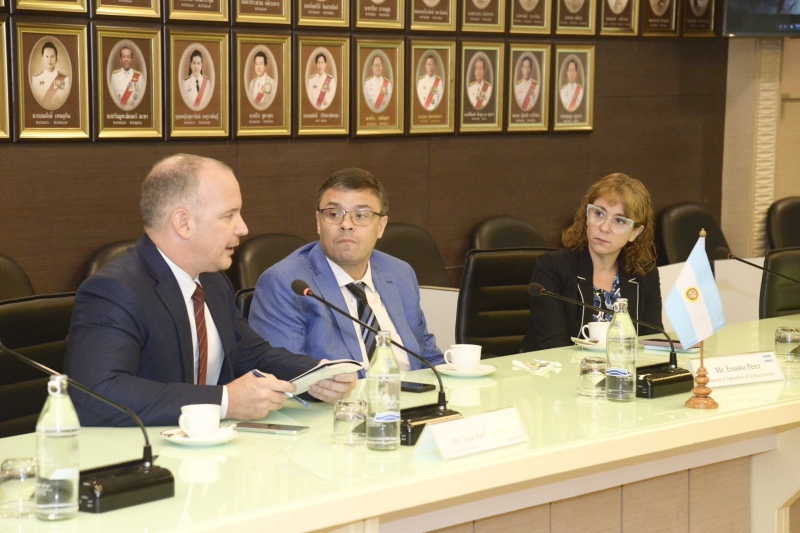 สำหรับการหารือในวันนี้ กระทรวงเกษตรและสหกรณ์กับอาร์เจนตินาได้มีการหารือความเป็นไปได้ในการทำความร่วมมือด้านการเกษตรกับจังหวัดลาริโอจา (La Rioja Province) ซึ่งกระทรวงเกษตรฯ มีความยินดีอย่างยิ่ง ทั้งนี้ ทั้งสองฝ่ายมีความสนใจร่วมกันในด้านเครื่องจักรกลทางการเกษตรสำหรับเกษตรกรรายย่อย โดยที่ผ่านมากระทรวงเกษตรและสหกรณ์ได้ดำเนินโครงการความร่วมมือด้านการเกษตรกับฝ่ายอาร์เจนตินา 2 โครงการด้วยกัน ได้แก่ 1) โครงการเพิ่มศักยภาพการผลิตถั่วเหลืองและการใช้ประโยชน์อย่างยั่งยืน และการพัฒนาเทคโนโลยีเครื่องจักรกลการเกษตรในการผลิตถั่วเหลือง (Potential Enhancement for Sustainable Soybean Production and Utilization and Agriculture Machinery Technology Development for Soybean Production) โดยกรมวิชาการเกษตร และ 2) โครงการศึกษาดูงานเรื่องโรคปากและเท้าเปื่อย ด้านการผลิตวัคซีน การใช้วัคซีนเพื่อควบคุมป้องกันโรคและกฎหมายที่เกี่ยวข้อง ณ สาธารณรัฐอาร์เจนตินา โดยกรมปศุสัตว์