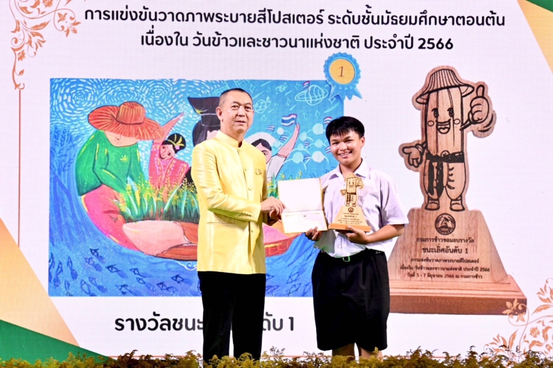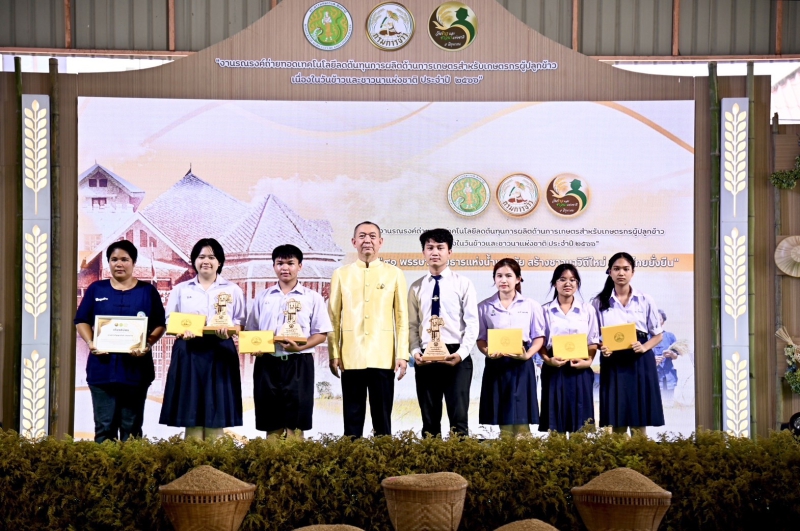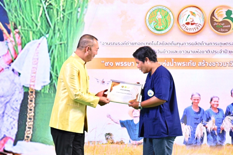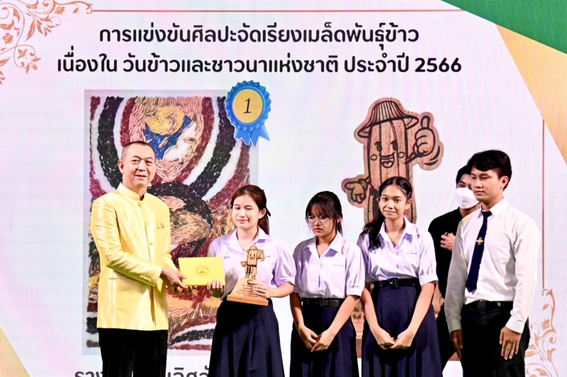 นอกจากนี้ รมว.เกษตรฯ ได้แสดงความยินดีกับผู้ที่ได้รับรางวัลชนะเลิศในการประกวดแข่งขันดังกล่าว และชื่นชมต่อความสําเร็จของการจัดงานในครั้งนี้ ซึ่งการจัดงานทําให้เกษตรกร และผู้สนใจได้รำลึกถึงความสําคัญของข้าว ในฐานะพืชที่หล่อเลี้ยงชีวิตคนไทยมาอย่างยาวนาน ตลอดจนได้รับทราบองค์ความรู้ด้านเทคโนโลยีลดต้นทุนการผลิตด้านการเกษตรที่ใช้ในการเพิ่มประสิทธิภาพการผลิตข้าว การยกระดับคุณภาพผลผลิตให้สนองความต้องการของตลาด พร้อมทั้งการผลิตข้าวที่เป็นมิตรต่อสิ่งแวดล้อมและนําไปประยุกต์ใช้ประโยชน์ต่อไป