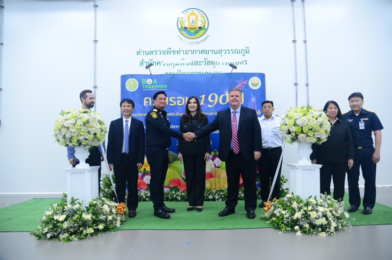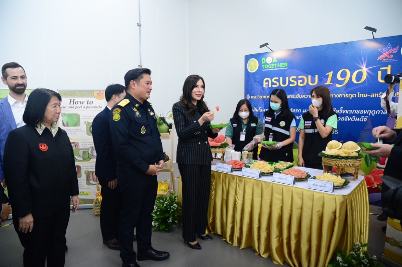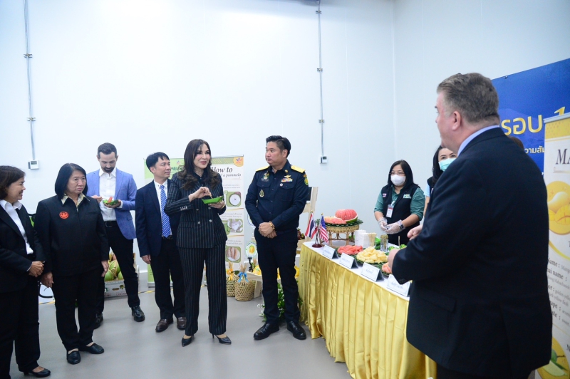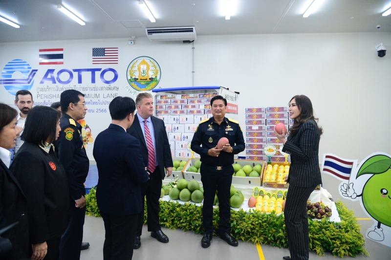 นางสาวมนัญญา ไทยเศรษฐ์ รัฐมนตรีช่วยว่าการกระทรวงเกษตรและสหกรณ์ และนาย มาร์ค กิลคีย์ (MR. Marc Gilkey) ผู้แทนกระทรวงเกษตรสหรัฐอเมริกา (USDA) ร่วมเป็นสักขีพยานการจัดส่งส้มโอไทยชิปเม้นท์แรก มะม่วงชิปเม้นท์แรกของฤดูกาลปี 2566 และมังคุด ไปยังกรุงวอชิงตัน ดีซี สหรัฐอเมริกา โดยมี นายระพีภัทร์ จันทรศรีวงศ์ อธิบดีกรมวิชาการเกษตร กล่าวรายงานสรุปการดำเนินงานโครงการ Pre Clearance Program ณ ด่านตรวจพืชท่าอากาศยานสุวรรณภูมิ อาคารตรวจสอบรับรองสินค้าพืชแบบเบ็ดเสร็จ กรมวิชาการเกษตร แห่งใหม่