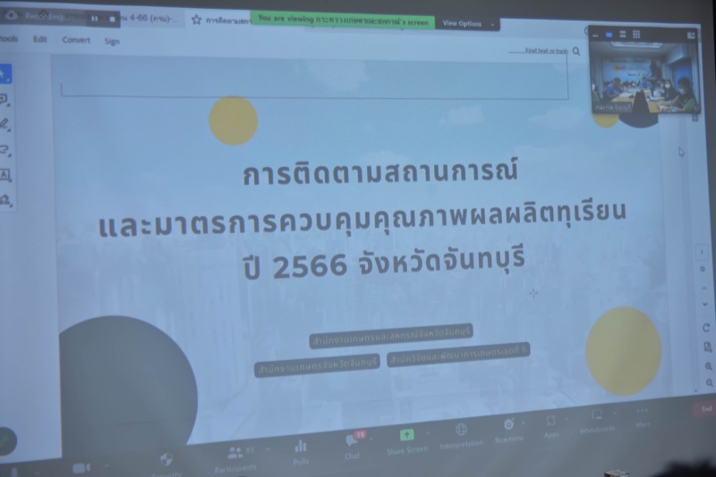 นายสุรเดช สมิเปรม รองปลัดกระทรวงเกษตรและสหกรณ์ พร้อมด้วย นายอภัย สุทธิสังข์ รองปลัดกระทรวงเกษตรและสหกรณ์ ได้รับมอบหมายจากปลัดกระทรวงเกษตรและสหกรณ์ (นายประยูร อินสกุล) ให้เป็นประธานการประชุมคณะทำงานแก้ไขปัญหาทุเรียนด้อยคุณภาพและการสวมสิทธิ์ใช้ใบรับรองการปฏิบัติทางการเกษตรที่ดี (GAP) ของเกษตรกรเพื่อการส่งออกทุเรียนของประเทศไทย ครั้งที่ 4/2566 โดยมี พันจ่าเอกประเสริฐ มาลัย หัวหน้าผู้ตรวจราชการกระทรวงเกษตรและสหกรณ์ นายภัสชญภณ หมื่นแจ้ง รองอธิบดีกรมวิชาการเกษตร นายณฤทธิ์ บุญชัย ผู้อำนวยการสำนักแผนงานและโครงการพิเศษ ตลอดจนหน่วยงานที่เกี่ยวข้องเข้าร่วม ณ ห้องประชุมกระทรวงเกษตรและสหกรณ์ (1403) และผ่านระบบ Zoom Meeting