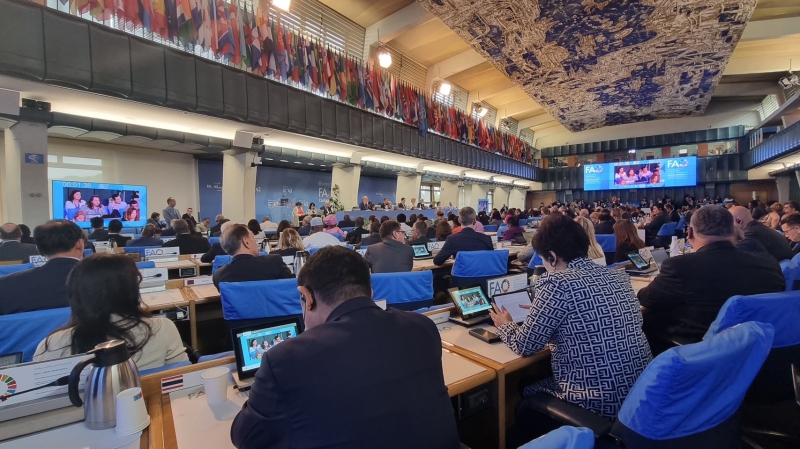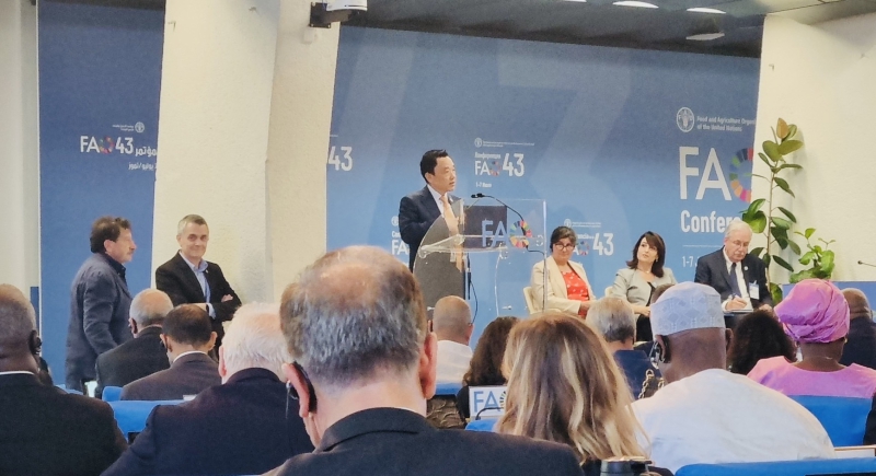 เมื่อวันที่ 1 กรกฎาคม 2566 ปลัดกระทรวงเกษตรและสหกรณ์มอบหมายให้นายเศรษฐเกียรติ กระจ่างวงษ์ รองปลัดกระทรวงเกษตรและสหกรณ์ พร้อมด้วยนายปราโมทย์ ยาใจ อธิบดีกรมพัฒนาที่ดิน ดร.วนิดา กำเนิดเพ็ชร์ ผู้อำนวยการสำนักการเกษตรต่างประเทศ นางสาวรัชนก แสงเพ็ญจันทร์ รักษาราชการแทนอัครราชทูตที่ปรึกษา (ฝ่ายเกษตร) และนางศุภจิต ศรีอริยวัฒน์ ที่ปรึกษา (ฝ่ายเกษตร) สำนักงานที่ปรึกษาการเกษตรต่างประเทศ ประจำกรุงโรม เข้าร่วมการประชุมสมัชชาใหญ่ FAO สมัยที่ 43 (The 43rd Session of the FAO Conference) และร่วมรับฟังการกล่าวปราศรัยแสดงวิสัยทัศน์ของนายฉู ตงหยู (Mr. Qu Dongyu) ผู้สมัครรับเลือกตั้งเป็นผู้อำนวยการใหญ่ FAO ก่อนที่จะมีการลงคะแนนเสียงเลือกตั้ง ในวันที่ 2 กรกฎาคม 2566 เวลา 10.30 น. ณ สำนักงานใหญ่ FAO กรุงโรม สาธารณรัฐอิตาลี