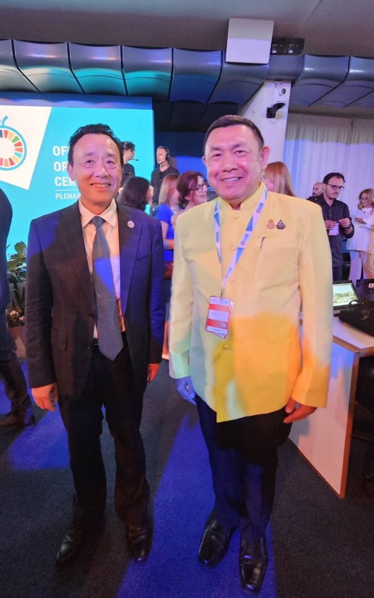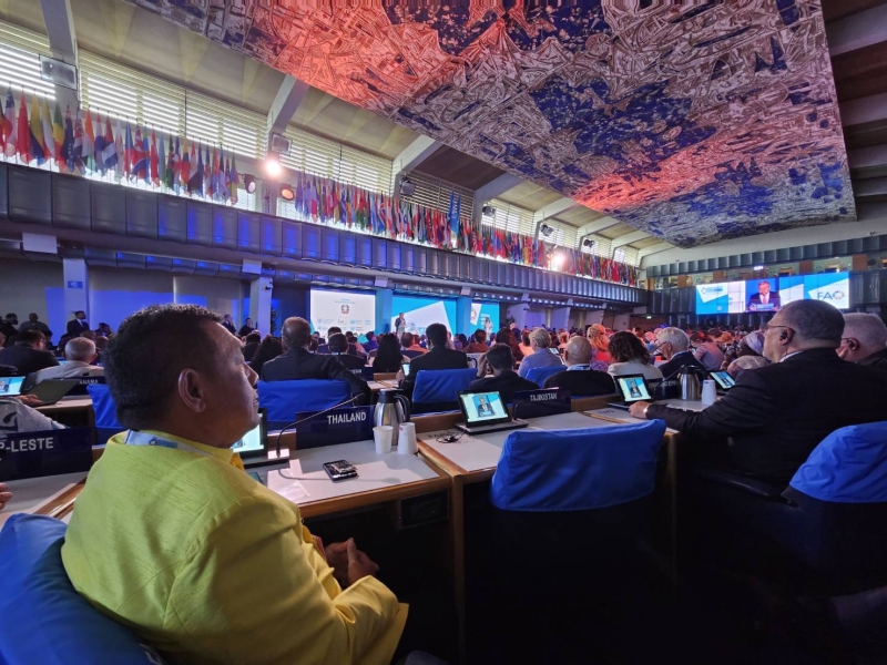 เมื่อวันที่ 24 กรกฎาคม 2566 นายเศรษฐเกียรติ กระจ่างวงษ์ รองปลัดกระทรวงเกษตรและสหกรณ์ ได้รับมอบหมายจาก ดร.เฉลิมชัย ศรีอ่อน รัฐมนตรีว่าการกระทรวงเกษตรและสหกรณ์ ให้เป็นผู้แทนเข้าร่วมพิธีเปิดการประชุม UN Food Systems Stocktaking Moment (UNFSS+2) โดยมี นางสาววนิดา กำเนิดเพ็ชร์ ผู้อำนวยการสำนักการเกษตรต่างประเทศ นางสาวรัชนก แสงเพ็ญจันทร์ รักษาราชการแทนอัครราชทูต (ฝ่ายเกษตร) นางศุภจิต ศรีอริยวัฒน์ ที่ปรึกษา (ฝ่ายเกษตร) สำนักงานที่ปรึกษาการเกษตรต่างประเทศ ประจำกรุงโรม เข้าร่วม ณ สำนักงานใหญ่องค์การอาหารและการเกษตรแห่งสหประชาชาติ (FAO) กรุงโรม สาธารณรัฐอิตาลี