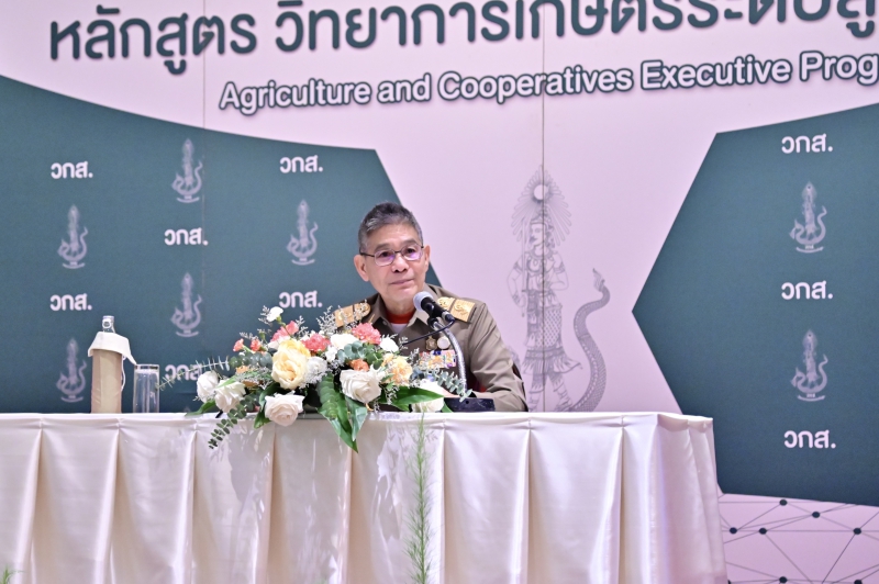 “กระทรวงเกษตรและสหกรณ์ ได้บูรณาการความร่วมมือกับมูลนิธิเกษตราธิการ และสำนักงานพัฒนาการวิจัยการเกษตร (องค์การมหาชน) ในการจัดทำหลักสูตรวิทยาการเกษตรระดับสูง (วกส.) เพื่อให้ผู้บริหารระดับสูงสามารถขับเคลื่อนภาคการเกษตรไทย ให้เป็นผู้นำในระดับนานาชาติด้วยวิทยาการเกษตร เทคโนโลยีและนวัตกรรมสมัยใหม่ ภายใต้หลักการตลาดนำการผลิตและเศรษฐกิจพอเพียง เพื่อความสมดุล มั่นคงและยั่งยืนให้แก่ภาคเกษตรของประเทศไทย” รองปลัดเกษตรฯ กล่าว