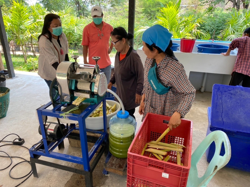 สำหรับอ้อย ได้ดำเนินการขยายผลการผลิตอ้อยคั้นน้ำสุพรรณบุรี 50 โดยใช้เทคโนโลยีการใช้ชีวภัณฑ์แมลงหางหนีบขาวงแหวนในการควบคุมแมลงศัตรูพืช และการปฏิบัติตามแนวทางการป้องกันกำจัดโรคใบขาวอ้อย ซึ่งการปฏิบัติตามคำแนะนำดังกล่าวจะมีผลผลิตน้ำอ้อยต่อไร่สูงถึง 5,960 ลิตรส่งผลให้เกษตรมีรายได้เพิ่มขึ้นถึง7,420บาทต่อไร่ เมื่อคำนวณพื้นที่เพาะปลูกของจังหวัดเพชรบุรีมีพื้นที่เพาะปลูกรวม 33,300 ไร่ ส่งผลให้มีรายได้เพิ่มขึ้นถึง 247 ล้านบาท ปัจจุบันมีเกษตรกรที่รับเทคโนโลยีดังกล่าวไปปรับใช้และสามารถจัดทำเป็นแปลงขยายผลเทคโนโลยีได้อีก 17 ราย แบ่งเป็น เกษตรกรผู้ผลิตสับปะรด 12 ราย และเกษตรกรผู้ผลิตอ้อยคั้นน้ำ 5 ราย
