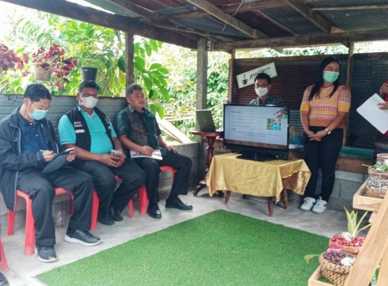 จากนั้น ลงพื้นที่ติดตามเกษตรกรตัวอย่าง นางสำลี บุญมา ณ หมู่ 3 ตำบล บางโกระ อำเภอโคกโพธิ์ จังหวัดปัตตานี ภายใต้หลักคิด “ในพื้นที่หนึ่งสามารถบริหารจัดการปลูกพืชได้หลายชนิด ได้รับผลผลิตต่อเนื่อง สามารถเก็บผลผลิตรับประทานและจำหน่ายสร้างรายได้ตลอดทั้งปี” ดำเนินการจัดตั้งกลุ่มรวบรวมผลผลิตเมล็ดกาแฟสดในชุมชน ปลูกกาแฟสายพันธุ์โรบัสต้า พันธุ์อราบิก้าแซมในสวน
