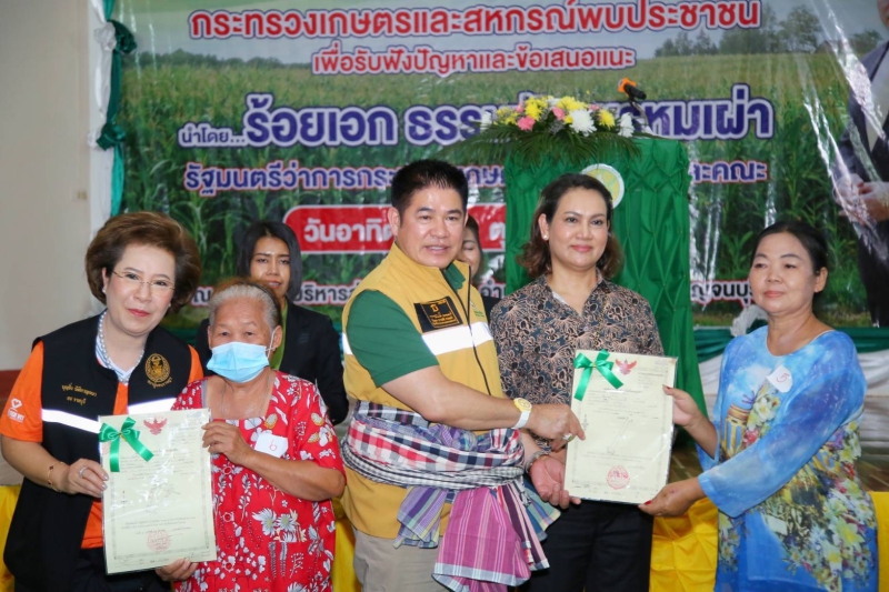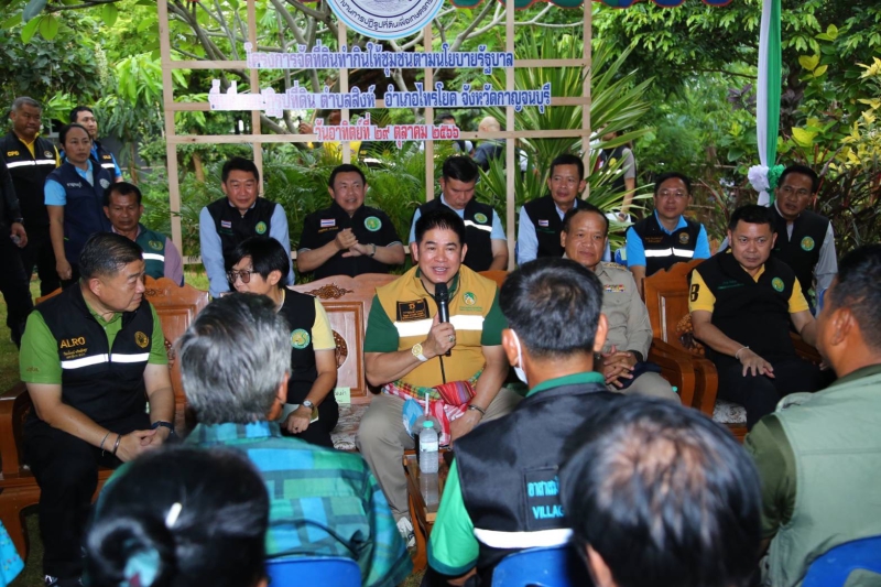 ร้อยเอก ธรรมนัส กล่าวว่า รัฐบาลมีนโยบายสำคัญในการแก้ไขปัญหาผู้ไร้ที่ดินทำกิน โดยใช้กลไกคณะกรรมการนโยบายที่ดินแห่งชาติ (คทช.) ซึ่งนโยบายดังกล่าวเป็นนโยบายที่เอื้อให้สำนักงานการปฏิรูปที่ดินเพื่อเกษตรกรรม (ส.ป.ก.) สามารถขับเคลื่อนภารกิจด้านการจัดที่ดินทำกินให้แก่ผู้ยากไร้ไม่มีที่ดินทำกินและที่อยู่อาศัยได้รวดเร็วยิ่งขึ้น ลดความเหลื่อมล้ำและสร้างความมั่นคงในที่ดิน ที่อยู่อาศัย การพัฒนาอาชีพ รายได้ และการพัฒนาคุณภาพชีวิตทุกมิติ โดยในปี 2562 ตนได้ลงพื้นที่จังหวัดกาญจนบุรี และมอบนโยบายแนวทางขับเคลื่อนโครงการ คทช. เพื่อปรับปรุงพื้นที่ให้ เกษตรกรเข้าทำกิน ในตำบลสิงห์ อำเภอไทรโยค โดยมุ่งเน้นการส่งเสริมอาชีพ สร้างรายได้ และใช้พื้นที่ให้เกิดประโยชน์สูงสุด