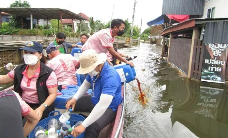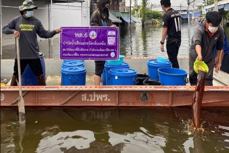 นายปราโมทย์ ยาใจ อธิบดีกรมพัฒนาที่ดิน เปิดเผยว่า จากสถานการณ์อุทกภัยในหลายพื้นที่โดยเฉพาะในภาคตะวันออกเฉียงเหนือ และภาคเหนือ กรมพัฒนาที่ดิน ได้เร่งผลิตสารบำบัดน้ำเสีย และขจัดกลิ่นเหม็นจากสารเร่งซุปเปอร์ พด.6 เพื่อบรรเทาความเดือดร้อนของเกษตรกรและประชาชน ช่วยในการบำบัดน้ำเสียหลังเกิดน้ำท่วมขังเป็นเวลานาน โดยได้มีการผลิตสารบำบัดน้ำเสีย จากเศษอาหารและวัสดุอินทรีย์ที่เหลือใช้ในครัวเรือนในอัตราแนะนำ 1 ลิตร ต่อน้ำเสีย 10 ลูกบาศก์เมตร ทุกๆ 10 วัน และส่งเสริมการนำวัสดุอินทรีย์ที่มีอยู่ภายในชุมชนมาใช้ประโยชน์ทำปุ๋ยหมัก ปุ๋ยอินทรีย์สำหรับปรับปรุงบำรุงดิน และรักษาสิ่งแวดล้อมในชุมชนอย่างยั่งยืน ซึ่งที่ผ่านมากรมพัฒนาที่ดิน ได้สนับสนุนสารบำบัดน้ำเสียและขจัดกลิ่นเหม็น เพื่อช่วยเหลือผู้ประสบภัยน้ำท่วมมาโดยตลอด สำหรับปีนี้ก็เช่นกัน ได้มีการจัดเตรียมสารบำบัดน้ำเสีย ให้เพียงพอต่อการช่วยเหลือเกษตรกรและประชาชนที่มีความเดือดร้อนในพื้นที่ต่างๆ และได้มีนโยบายให้สถานีพัฒนาที่ดินทุกจังหวัดทั่วประเทศ ลงพื้นที่แจกจ่ายสารบำบัดน้ำเสีย และขจัดกลิ่นเหม็นจากสารเร่งซุปเปอร์ พด.6 พร้อมให้คำแนะนำ ให้ความรู้ในการบำบัดน้ำเน่าเสีย ซึ่งในกรณีเร่งด่วนสามารถใช้สารเร่งซุปเปอร์ พด.6 ขยายเชื้อในกากน้ำตาล น้ำสะอาด โดยหมักเป็นเวลา 4 วัน นอกจากจะใช้บำบัดเสียแล้วยังสามารถกำจัดลูกน้ำยุงรำคาญได้อีกด้วย แต่ควรใช้ในสภาพน้ำนิ่งเน่าเสียและส่งกลิ่นเหม็น