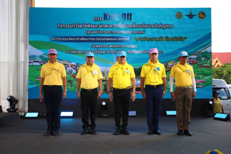 ร้อยเอก ธรรมนัส พรหมเผ่า รัฐมนตรีว่าการกระทรวงเกษตรและสหกรณ์ เป็นประธาน Kick Off กิจกรรมการกำจัดวัชพืชและผักตบชวา ในแม่น้ำลำคลองสายหลัก และกิจกรรมจิตอาสาพัฒนา กระทรวงเกษตรและสหกรณ์ “เราทำความดี ด้วยหัวใจ” ณ บริเวณคลองระพีพัฒน์แยกตก วัดลำพระยา ตำบลวังจุฬา อำเภอวังน้อย จังหวัดพระนครศรีอยุธยา และอีก 16 จุดทั่วประเทศ ประกอบด้วย จังหวัดเชียงใหม่ พะเยา อุตรดิตถ์ กำแพงเพชร อุดรธานี ร้อยเอ็ด อุบลราชธานี นครราชสีมา ชลบุรี ลพบุรี ชัยนาท กาญจนบุรี ประจวบคีรีขันธ์ นครศรีธรรมราช สงขลา และนราธิวาส โดยบูรณาการความร่วมมือจากทุกส่วนราชการและหน่วยงานในสังกัดกระทรวงเกษตรและสหกรณ์ ทั้งในส่วนกลางและในพื้นที่จังหวัด องค์กรปกครองส่วนท้องถิ่น ผู้นำชุมชน ประชาชนจิตอาสา รวมถึงกำลังพลจิตอาสาของกระทรวงกลาโหมและกระทรวงมหาดไทยในพื้นที่ เพื่อพัฒนาพื้นที่ลุ่มน้ำ เพิ่มประสิทธิภาพการระบายน้ำ และการส่งน้ำเพื่ออุปโภคบริโภคและการเกษตรอย่างเต็มศักยภาพในพื้นที่