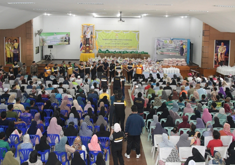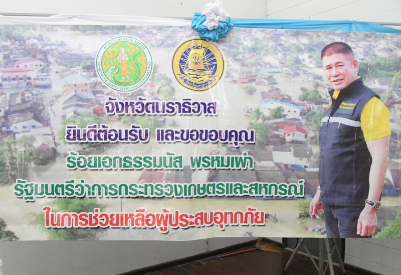 ร้อยเอก ธรรมนัส พรหมเผ่า รัฐมนตรีว่าการกระทรวงเกษตรและสหกรณ์ ลงพื้นที่ตรวจเยี่ยมและให้ความช่วยเหลือผู้ประสบอุทกภัย พร้อมมอบถุงยังชีพให้กับประชาชนในพื้นที่จังหวัดนราธิวาส โดยมอบให้แก่ผู้ประสบอุทกภัยในพื้นที่ ต.สุไหงโก-ลก อ.สุไหงโก-ลก จำนวน 500 ชุด ในพื้นที่ ต.มะรือโบออก อ.เจาะไอร้อง จำนวน 500 ชุด และในพื้นที่ ต.บาโงสะโต อ.ระแงะ จำนวน 300 ชุด รวม 1,300 ชุด หลังเกิดฝนตกหนักอย่างต่อเนื่องในพื้นที่ 3 จังหวัดชายแดนภาคใต้ ตั้งแต่วันที่ 22 ธันวาคม 2566 ถึงปัจจุบัน จนเกิดปริมาณน้ำสะสม ทำให้เกิดอุทกภัยฉับพลัน ส่งผลทำให้พื้นที่ทางการเกษตรและบ้านเรือนของประชาชนเกิดน้ำท่วมขัง และยังมีถนนสายหลักและถนนภายในหมู่บ้านมีน้ำท่วมสูง ถนนบางสายยานพาหนะทุกชนิดไม่สามารถสัญจรไปมาได้ รัฐมนตรีว่าการกระทรวงเกษตรและสหกรณ์จึงได้สั่งการให้ทุกหน่วยงานในสังกัดเร่งสำรวจความเสียหายด้านการเกษตร และเข้าให้การช่วยเหลือประชาชนและเกษตรกรอย่างเร่งด่วน โดยหน่วยงานในสังกัดกระทรวงเกษตรและสหกรณ์ จังหวัดยะลา ปัตตานี และนราธิวาส ร่วมกับมูลนิธิธรรมนัส พรหมเผ่า ดำเนินการจัดตั้งโรงครัวเพื่อผลิตข้าวกล่องและมอบน้ำดื่มให้กับผู้ประสบอุทกภัยในพื้นที่ 3 จังหวัดชายแดนภาคใต้ นอกจากนี้ ยังได้ติดตั้งเครื่องสูบน้ำ และสนับสนุนหญ้าแห้งเสบียงอาหารสัตว์ให้กับเกษตรกรในพื้นที่ด้วย อย่างไรก็ตาม กระทรวงเกษตรและสหกรณ์ได้เตรียมมาตรการทั้งระยะสั้นและระยะยาว ในการบริหารจัดการน้ำและภัยพิบัติที่อาจจะเกิดขึ้นอย่างฉับพลันเพื่อให้สถานการณ์คลี่คลายไปในทิศทางที่ดีขึ้น