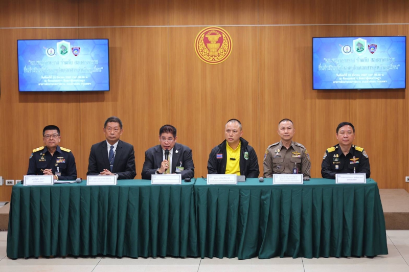 ร้อยเอก ธรรมนัส พรหมเผ่า รัฐมนตรีว่าการกระทรวงเกษตรและสหกรณ์ แถลงความก้าวหน้าการดำเนินงานของหน่วยเฉพาะกิจพญานาคราช (ฉก.พญานาคราช) โดยมี พล.ต.ต. เอกรักษ์ ลิ้มสังกาศ รองเลขาธิการคณะกรรมการป้องกันและปราบปรามการฟอกเงิน พันเอก รวิรักษ์ สัตตบุศย์ ผู้บังคับหน่วยเฉพาะกิจพญานาคราช นายบัญชา สุขแก้ว อธิบดีกรมประมง นายสมชวน รัตนมังคลานนท์ อธิบดีกรมปศุสัตว์ พล.ต.ต. วิทยา ศรีประเสริฐภาพ ผู้บังคับการกองบังคับการปราบปรามการกระทำความผิดเกี่ยวกับการคุ้มครองผู้บริโภค และเจ้าหน้าที่ที่เกี่ยวข้องเข้าร่วม ณ ห้องแถลงข่าว ฝั่งสภาผู้แทนราษฎร อาคารสัปปายะสภาสถาน ถนนสามเสน กรุงเทพฯ ว่า ตามที่กระทรวงเกษตรและสหกรณ์ได้ประกาศสงครามปราบปรามสินค้าเกษตรผิดกฎหมายที่ส่งผลกระทบต่อเกษตรกรและเศรษฐกิจในภาพรวมของประเทศเป็นอย่างมาก โดยได้แต่งตั้ง “หน่วยเฉพาะกิจพญานาคราช” (ฉก.พญานาคราช) ขึ้นมาเพื่อขับเคลื่อนนโยบายปราบปรามการลักลอบนำเข้าสินค้าเกษตรผิดกฎหมาย ทั้งสินค้าพืช ประมง และปศุสัตว์ ให้เป็นไปอย่างมีประสิทธิภาพ ซึ่งที่ผ่านมา “ฉก.พญานาคราช” ได้ดำเนินการอย่างจริงจังและเห็นผลเป็นรูปธรรมมาอย่างต่อเนื่อง ตั้งแต่การลงพื้นที่สุ่มตรวจตู้คอนเทนเนอร์ ณ ท่าเรือแหลมฉบัง จังหวัดชลบุรี เมื่อวันที่ 6 ธันวาคม 2566 พบการซุกซ่อนชิ้นส่วนสุกรปะปนอยู่ภายในตู้สินค้าประมง จากนั้นเมื่อวันที่ 18 มกราคม 2567 ได้มีการตั้ง War room โดยผู้เชี่ยวชาญจากกรมประมงและกรมปศุสัตว์ ร่วมกันตรวจสอบเอกสารประกอบการนำเข้าสัตว์น้ำของกรมประมง พบเอกสารที่มีการปลอมแปลง ได้ดำเนินการแจ้งความต่อกรมสอบสวนกลางแล้ว 20 คดี ได้แก่ 1) บริษัท ศิขัณทิน เทรดดิ้ง จำกัด 2) บริษัท สมายล์ ท็อป เค เอ็นเตอร์ไพรส์ จำกัด และ 3) ห้างหุ้นส่วนจำกัด บริบูรณ์ เทรดดิ้ง