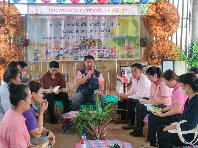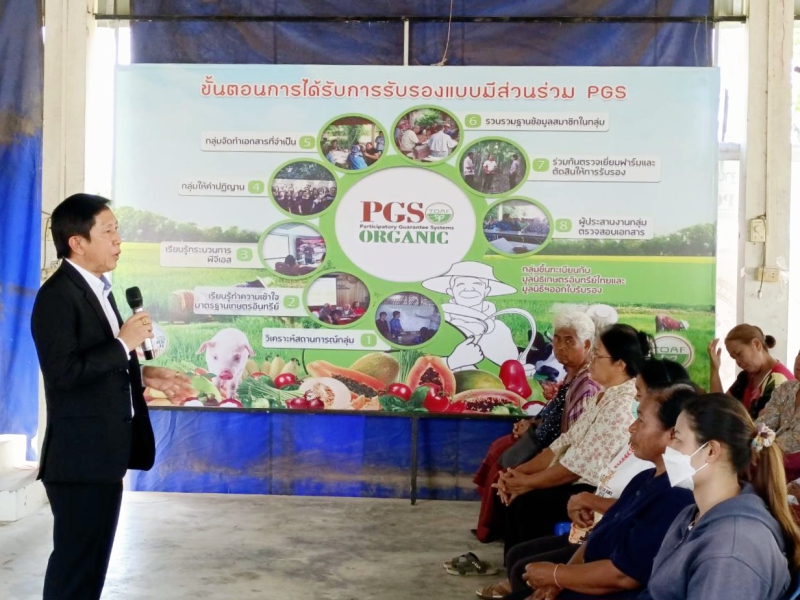 ด้าน นายจำเริญ นาคคง ผู้อำนวยการกองวิจัยและพัฒนาการจัดการที่ดิน กล่าวว่า กลุ่มเกษตรกรที่เข้าร่วมโครงการเกษตรอินทรีย์ PGS ของกรมพัฒนาที่ดินจะมี “มิสเตอร์เกษตรอินทรีย์” ซึ่งเป็นเจ้าหน้าที่ของกรมฯ เป็นพี่เลี้ยงคอยสนับสนุนให้คำปรึกษาทางวิชาการ พร้อมให้ความช่วยเหลือในการทำเกษตรอินทรีย์ โดยถ่ายทอดความรู้การจัดการดินให้เหมาะสมตามหลักการผลิตเกษตรอินทรีย์ เพื่อส่งเสริมให้เกษตรกรได้รับการรับรองมาตรฐานเกษตรอินทรีย์แบบมีส่วนร่วม (PGS) ซึ่งการได้ใบรับรองการผลิตเกษตรอินทรีย์จะทำให้เกษตรกรสามารถจำหน่ายผลผลิตได้ในราคาที่สูงขึ้น ทำให้มีรายได้เพิ่มมากขึ้น ส่งผลให้เกษตรกรมีคุณภาพชีวิตที่ดีขึ้น ซึ่งปัจจุบันมีกลุ่มเกษตรกรเข้าร่วมโครงการมากกว่า 500 กลุ่ม 20,000 ราย 40,000 ไร่ โดยในปีงบประมาณ 2566 มีเกษตรกรผ่านการรับรองมาตรฐานเกษตรอินทรีย์ PGS จำนวน 525 ราย 5,323 ไร่ และขยายผลการดำเนินงานผ่านศูนย์เรียนรู้เกษตรอินทรีย์ PGS ทั้งหมดมีจำนวน 75 แห่ง เพื่อเป็นแหล่งศึกษาดูงานการทำเกษตรอินทรีย์ครบวงจรตั้งแต่การจัดการดิน การผลิตในระบบเกษตรอินทรีย์ มาตรฐานเกษตรอินทรีย์ กระบวนการรับรองแบบมีส่วนร่วม PGS เพื่อให้เกษตรกรที่สนใจการผลิตในระบบเกษตรอินทรีย์ PGS ได้มาศึกษาดูงาน และนำความรู้แนวทางไปปรับใช้ในพื้นที่ของตนเอง เกษตรกรที่สนใจเข้าร่วมโครงการเกษตรอินทรีย์ PGS สามารถติดต่อได้ที่สถานีพัฒนาที่ดินทุกจังหวัด หรือสอบถามข้อมูลได้ที่ โทร. 1760 ติดต่อกองวิจัยและพัฒนาการจัดการที่ดิน