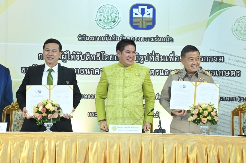 รัฐมนตรีว่าการกระทรวงเกษตรและสหกรณ์ กล่าวว่า กระทรวงเกษตรฯ โดย ส.ป.ก. ได้ดำเนินการตามนโยบายของรัฐบาล ที่ต้องการให้ประชาชนสามารถใช้ประโยชน์จากสินทรัพย์เพื่อสร้างโอกาสในการมีอาชีพ รายได้ และความมั่นคงในชีวิต โดยเร่งดำเนินการให้ประชาชนมีสิทธิในที่ดิน มีชีวิตที่มั่นคง พิจารณาเอกสารสิทธิการใช้ประโยชน์ให้เป็นโฉนดเพื่อให้สามารถนำไปต่อยอดให้เข้าถึงแหล่งทุนได้ นำมาพัฒนาที่ดินเพื่อสร้างคุณภาพชีวิตที่ดีขึ้นระยะยาว ซึ่ง ส.ป.ก. ได้ดำเนินการเปลี่ยนเอกสารสิทธิที่ดินจาก ส.ป.ก. 4-01 เป็นโฉนดเพื่อการเกษตร พร้อมขยายสิทธิการใช้ประโยชน์ให้เป็นที่ยอมรับเพื่อเพิ่มมูลค่าและใช้ค้ำประกันสินเชื่อกับสถาบันการเงินได้อย่างกว้างขวาง โดยแก้ไขระเบียบให้รองรับโฉนดเพื่อการเกษตร ตลอดจนสิทธิและการใช้ประโยชน์ส่วนเพิ่มเรียบร้อยแล้ว โดยเฉพาะการใช้โฉนดเพื่อการเกษตรเป็นหลักประกันเงินกู้กับ ธ.ก.ส.