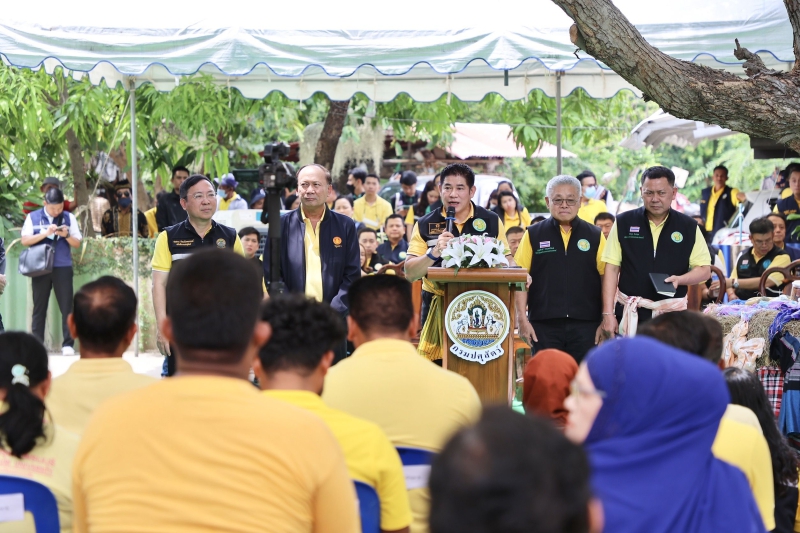 ร้อยเอก ธรรมนัส พรหมเผ่า รัฐมนตรีว่าการกระทรวงเกษตรและสหกรณ์ ติดตามผลการดำเนินงานของวิสาหกิจชุมชนกลุ่มแปรรูปอาหารฮาลาลเนื้อสัตว์เพชรบุรี พร้อมพบปะเกษตรกรและประชาชน และมอบกรรมสิทธิ์โค-กระบือ แก่เกษตรกร โครงการธนาคารโค-กระบือ เพื่อเกษตรกรตามพระราชดำริ โดยมี นายประยูร อินสกุล ปลัดกระทรวงเกษตรและสหกรณ์ ผู้บริหารกระทรวงเกษตรและสหกรณ์ และหัวหน้าส่วนราชการในพื้นที่ เข้าร่วม ณ ต.ท่าแร้งออก อ.บ้านแหลม จ.เพชรบุรี