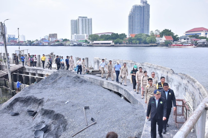 ปลัดเกษตรฯ รุดตรวจพนังคอนกรีตริมแม่น้ำเจ้าพระยาชำรุด สั่งกรมชลฯ เร่งสร้างคันกั้นน้ำชั่วคราว ป้องกันน้ำหลากในช่วงฤดูฝนที่จะถึงนี้ไม่ให้กระทบชุมชนริมฝั่ง