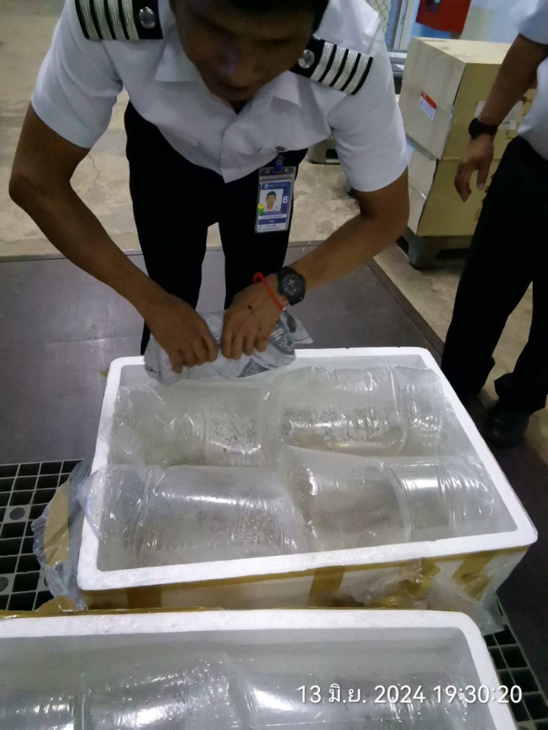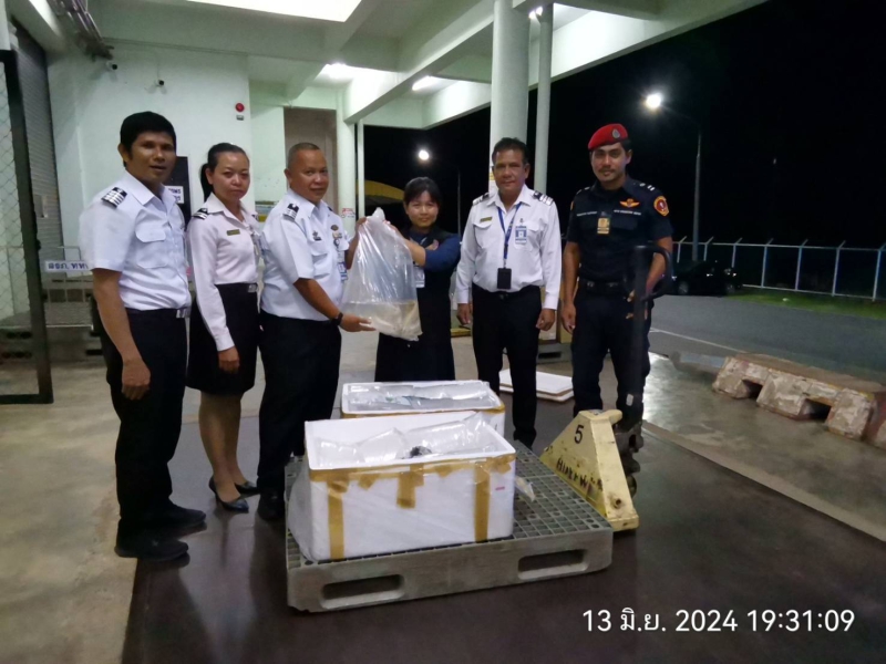 เมื่อวันที่ 13 มิถุนายน 2567 พันเอกรวิรักษ์ สัตตบุศย์ ผู้บังคับหน่วยเฉพาะกิจพญานาคราช เปิดเผยหลังนำกำลังเจ้าหน้าที่ศูนย์บริหารจัดการด่านตรวจประมงเขต 8 (สงขลา) ร่วมกับประมงอำเภอหาดใหญ่ ได้ออกตรวจลงพื้นที่หาข่าวผ่านช่องทางสื่อออนไลน์ เพื่อเฝ้าระวังการกระทำความผิดลักลอบนำเข้าสัตว์น้ำโดยเฉพาะปลาสวยงามเข้ามาในราชอาณาจักรโดยไม่ได้รับอนุญาต ซึ่งนายธีระพงษ์ อภัยภักดี ผู้อำนวยการศูนย์บริหารจัดการด่านตรวจประมงเขต 8 (สงขลา) มอบหมายให้นายศราวุธ คเชนทองสุวรรณ์ นักวิชาการประมงปฏิบัติการ หัวหน้าชุดเฉพาะกิจป้องกันลักลอบการนำเข้าสินค้าประมงผิดกฎหมาย และนางสาวชิดชนก บุญโกย นักวิชาการประมงปฏิบัติการ กรมประมง เข้าตรวจสอบสินค้า ณ อาคารคลังสินค้า ท่าอากาศยานหาดใหญ่ อำเภอคลองหอยโข่ง จังหวัดสงขลา โดยบูรณาการร่วมกับนายสมเกียรติ อินทร์ชู ประมงอำเภอหาดใหญ่ เฝ้าระวังการลักลอบนำเข้าหรือซื้อขายหรือครองครองสัตว์น้ำหวงห้ามผ่านสื่อออนไลน์ที่ต้องสงสัย เบื้องต้นพบข้อมูลว่าจะมีการนำส่งปลาสวยงามที่อาจจะไม่มีใบอนุญาตให้ค้าหรือครอบครอง หรือลักลอบนำเข้า ซึ่งเป็นความผิดตาม พรก.การประมง พ.ศ. 2558 ในมาตรา 65 และ 92 และ พรบ. สงวนและคุ้มครองสัตว์ป่า พ.ศ. 2562 มาตรา 17 ว่าด้วยห้ามมิให้ผู้ใดมีไว้ในครอบครองซึ่งสัตว์ป่าสงวน สัตว์ป่าคุ้มครอง รวมถึงมาตรา 29 ว่าด้วยห้ามมิให้ผู้ใดค้าสัตว์ป่าสงวน สัตว์ป่าคุ้มครอง โดยมีการนำปลาสวยงามมานำส่ง ณ คลังอาคารสินค้า ท่าอากาศยานหาดใหญ่ ทั้งนี้ เจ้าหน้าที่จึงได้ทำการตรวจยึดสินค้าสัตว์น้ำประเภทปลาสวยงาม พบเป็น ปลาตะพัด (Scleropages formosus) มีชีวิต บรรจุในภาชนะกล่องโฟมเตรียมนำส่งไปยังท่าอากาศยานดอนเมือง จำนวน 2 กล่อง น้ำหนัก 60 กิโลกรัม จำนวน 48 ตัว มูลค่าประมาณ 288,000 บาท จึงได้อายัดสินค้าดังกล่าวไว้เพื่อตรวจสอบถึงแหล่งที่มาและดำเนินการในส่วนที่เกี่ยวข้องต่อไป