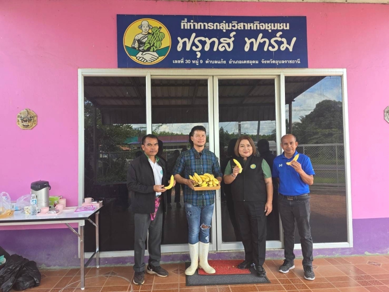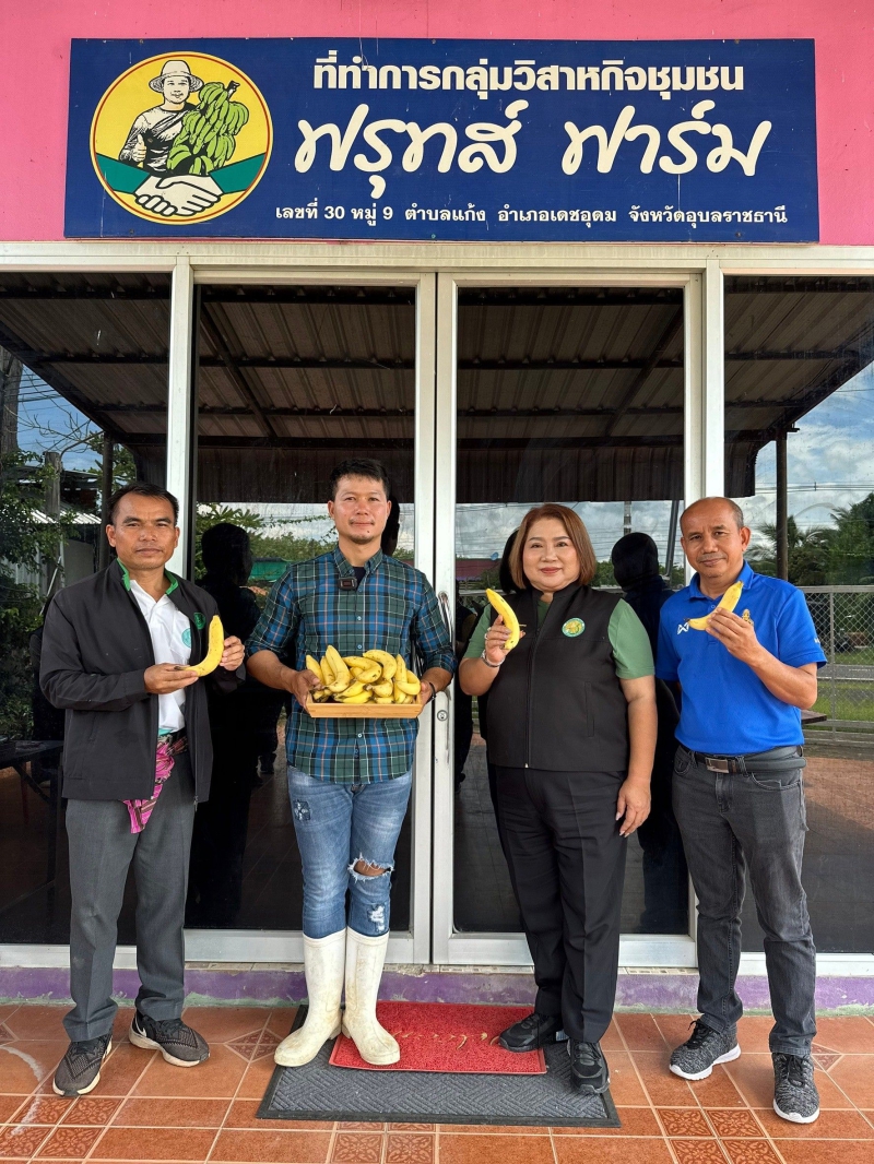 ดร.ณมาณิตา กลับบ้านเกาะ ประธานคณะกรรมการติดตามและขับเคลื่อนงานด้านการเกษตรและสหกรณ์ ตามนโยบายรัฐมนตรีว่าการกระทรวงเกษตรและสหกรณ์ ลงพื้นที่ตรวจเยี่ยมแปลงใหญ่กล้วยหอมทอง กลุ่มวิสาหกิจชุมชนฟรุทส์ฟาร์ม โดยมีนายนาวิน ป้องกัน เกษตรและสหกรณ์จังหวัดอุบลราชธานี นายอรรถยา ลาพ้น เกษตรอำเภอเดชอุดม และหัวหน้าหน่วยงานที่เกี่ยวข้อง เข้าร่วม ณ ศูนย์เรียนรู้การปลูกกล้วยหอมทองเพื่อการส่งออกประเทศญี่ปุ่น และแปลงกล้วยหอมทองของสมาชิกกลุ่ม ตำบลโนนสมบูรณ์ อำเภอเดชอุดม จังหวัดอุบลราชธานี