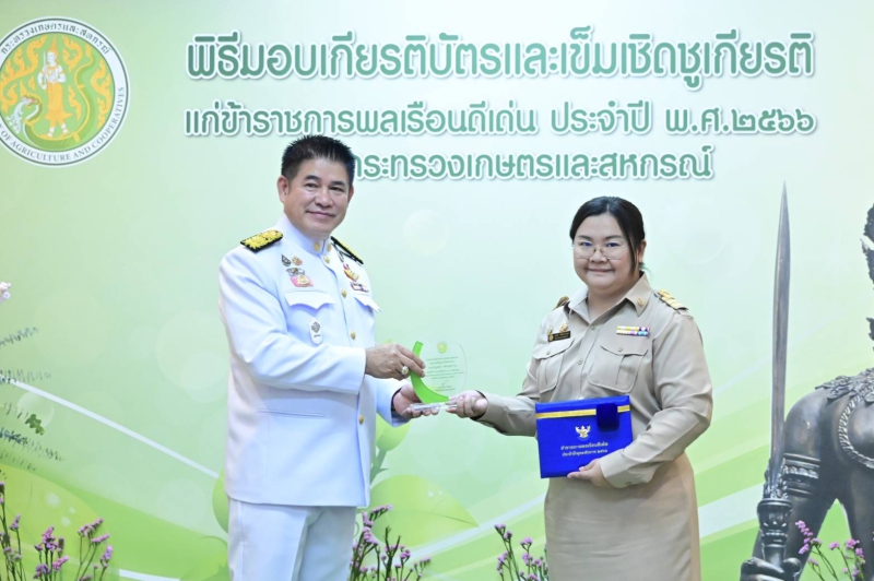 ในโอกาสนี้ รัฐมนตรีว่าการกระทรวงเกษตรและสหกรณ์ ได้เป็นประธานพิธีมอบเกียรติบัตรและเข็มเชิดชูเกียรติแก่ข้าราชการพลเรือนดีเด่น ประจำปี พ.ศ. 2566 ของกระทรวงเกษตรและสหกรณ์ ณ ห้องประชุม 115 กระทรวงเกษตรและสหกรณ์อีกด้วย