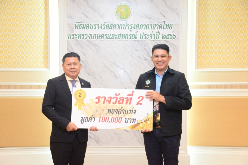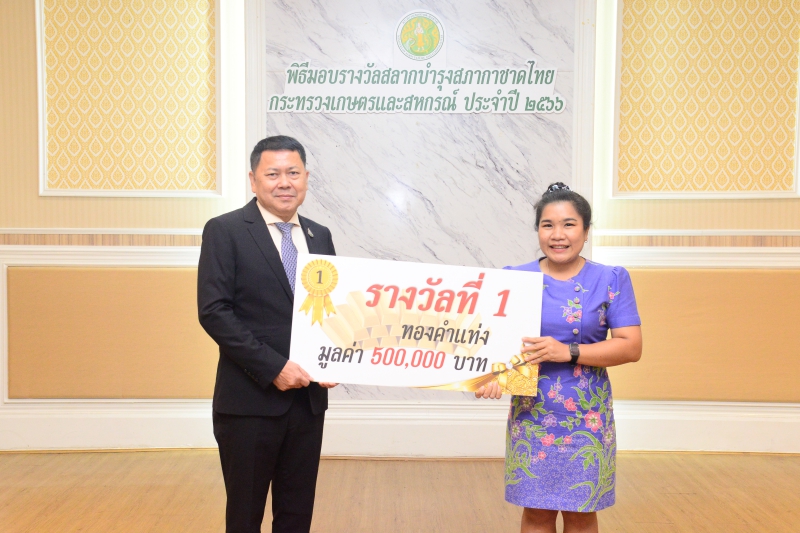 สำหรับรางวัลที่ 1 ทองคำแท่ง มูลค่า 500,000 บาท ได้แก่ นางสาวจันทร์จิรา ยุ่งยั้ง นักวิชาการส่งเสริมการเกษตรชำนาญการ กรมส่งเสริมการเกษตร และรางวัลที่ 2 ทองคำแท่งมูลค่า 100,000 บาท จำนวน 3 รางวัล ได้แก่ นายเติมศักดิ์ คงสำราญ นักวิชาการประมงชำนาญการ กรมประมง นางสาวสุภาภรณ์ ชัยพรศิริ เจ้าหน้าที่ระบบงานคอมพิวเตอร์ กรมวิชาการเกษตร และนางสาวพรกมล เจริญบุญ เจ้าพนักงานธุรการชำนาญงาน กรมปศุสัตว์