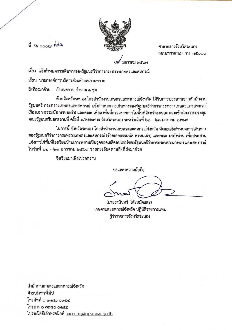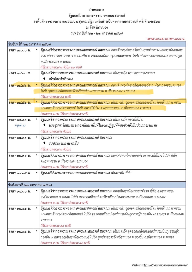 ที่เกาะพยาม อ.เมือง จ.ระนอง นางสาวอัยรินทร์ พันธุ์ฤทธิ์ โฆษกกระทรวงเกษตรและสหกรณ์ (ฝ่ายการเมือง) กล่าวถึงกรณีเฮลิคอปเตอร์กระทรวงเกษตรฯ ลงจอด ขณะที่นายอนุทิน ชาญวีรกูล รองนายกรัฐมนตรี และ รมว.มหาดไทย มอบของให้เด็กนักเรียน ว่า เรื่องนี้ไม่ได้มีดราม่าแต่อย่างใด น่าจะเป็นการสื่อสารที่เข้าใจคลาดเคลื่อน ซึ่งหลังจากตรวจสอบข้อเท็จจริงพบว่า กำหนดการเดินทางของ ร้อยเอก ธรรมนัส พรหมเผ่า รัฐมนตรีว่าการกระทรวงเกษตรและสหกรณ์ แจ้งกำหนดการไปยังส่วนราชการล่วงหน้าตามวันเวลาที่กำหนดอย่างถูกต้อง ส่วนการลงจอดของเฮลิคอปเตอร์ของกระทรวงเกษตรฯ นักบินไม่ทราบว่ามีการจัดงานบริเวณนี้ และไม่ได้มีการประสานงานแจ้งให้นักบินทราบล่วงหน้าแต่อย่างใด จึงทำการลงจอดเฮลิคอปเตอร์ตามกำหนดการปกติ ซึ่งก่อนหน้านี้มี ฮ.ลำแรกได้ลงจอดตรงจุดนี้ไปแล้วซึ่งไม่ได้มีการจัดงาน ฮ.ลำที่สอง จึงได้ลงจอดตามปกติตามกำหนดการที่แจ้งไว้ และหลังจากเกิดความผิดพลาดขึ้น ร้อยเอก ธรรมนัส พรหมเผ่า รมว.เกษตรและสหกรณ์ ไม่ได้นิ่งนอนใจแต่อย่างใด รีบโทรศัพท์เพื่อขอโทษกับนายอนุทินทันที ซึ่งก็มีการพูดคุยกันเพื่อทำความเข้าใจกับเหตุการณ์ที่เกิดขึ้นในครั้งนี้ และได้กล่าวขอโทษและเสียใจกับเหตุการณ์ที่เกิดขึ้นต่อนายอนุทิน ชาญวีรกูล รองนายกฯและ รมว.มหาดไทย โดยนายอนุทิน กล่าวเป็นภาษาเหนือแปลความว่า “ไม่เป็นไร อธิบดีกรมฝนหลวงได้มาเจอผมแล้ว เราซี้ (เพื่อน) กัน พวกเรารักกันทั้งนั้น” จึงไม่ได้มีปัญหาตามที่เป็นข่าว ทั้งนี้ กำหนดการกระทรวงเกษตรและสหกรณ์มีงานประชุมหารือแนวทางการพัฒนาพื้นที่เขตปฏิรูปที่ดินอย่างยั่งยืน บ้านเกาะพยาม ที่ตลาดใต้ม่วง