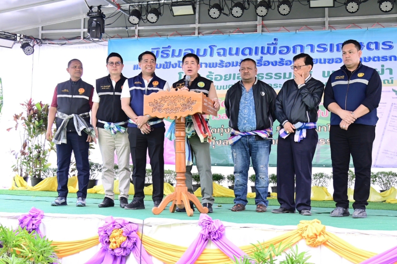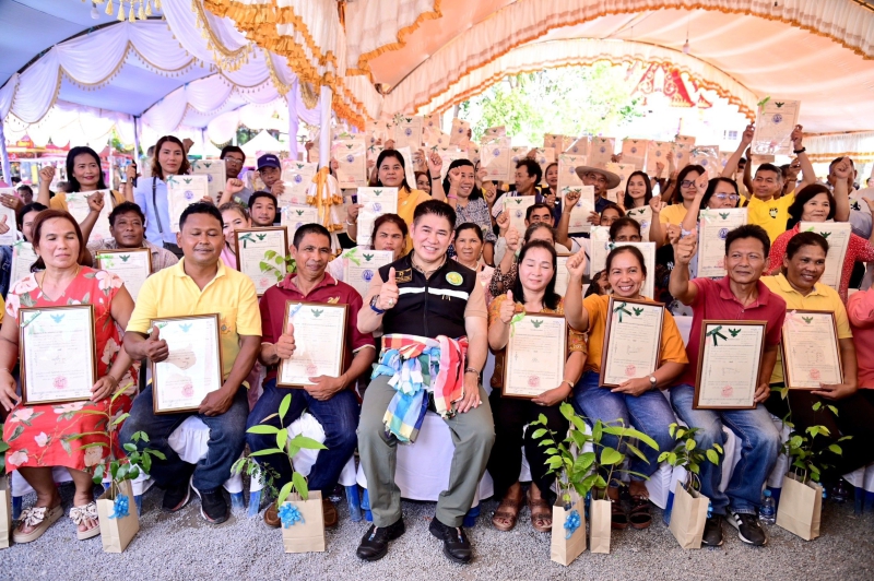 นอกจากนี้ รัฐมนตรีว่าการกระทรวงเกษตรและสหกรณ์ มอบโฉนดที่ดินเพื่อการเกษตร จำนวน 300 ราย 351 แปลง เนื้อที่ประมาณ 2,824 ไร่ ซึ่งจังหวัดนครศรีธรรมราชได้มีพระราชกฤษฎีกากำหนดให้เป็นเขตปฏิรูปที่ดิน เนื้อที่ทั้งหมดประมาณ 663,071 ไร่ เป็นพื้นที่เขตดำเนินการปฏิรูปที่ดินเนื้อที่ประมาณ 493,337 ไร่ ครอบคลุมพื้นที่ 19 อำเภอ โดยได้ดำเนินการจัดที่ดินให้เกษตรกรแล้วทั้งสิ้น 40,275 ราย 54,571 แปลง เนื้อที่ประมาณ 480,271 ไร่ ซึ่งในปีงบประมาณ 2567 มีแผนดำเนินการปรับปรุงหนังสืออนุญาตให้เข้าทำประโยชน์ในเขตปฏิรูปที่ดิน (ส.ป.ก.4-01) เป็นโฉนดเพื่อการเกษตร ในพื้นที่ 2 อำเภอ คือ อำเภอทุ่งสง และอำภอทุ่งใหญ่ จำนวน 7,995 แปลง ได้ดำเนินการปรับปรุงแก้ไขเอกสารสิทธิ ส.ป.ก. 4-01 ให้เป็นโฉนดเพื่อการเกษตรแล้ว จำนวน 476 แปลง เนื้อที่ประมาณ 3,735 และเพื่อเป็นขวัญและกำลังใจแก่เกษตรกร