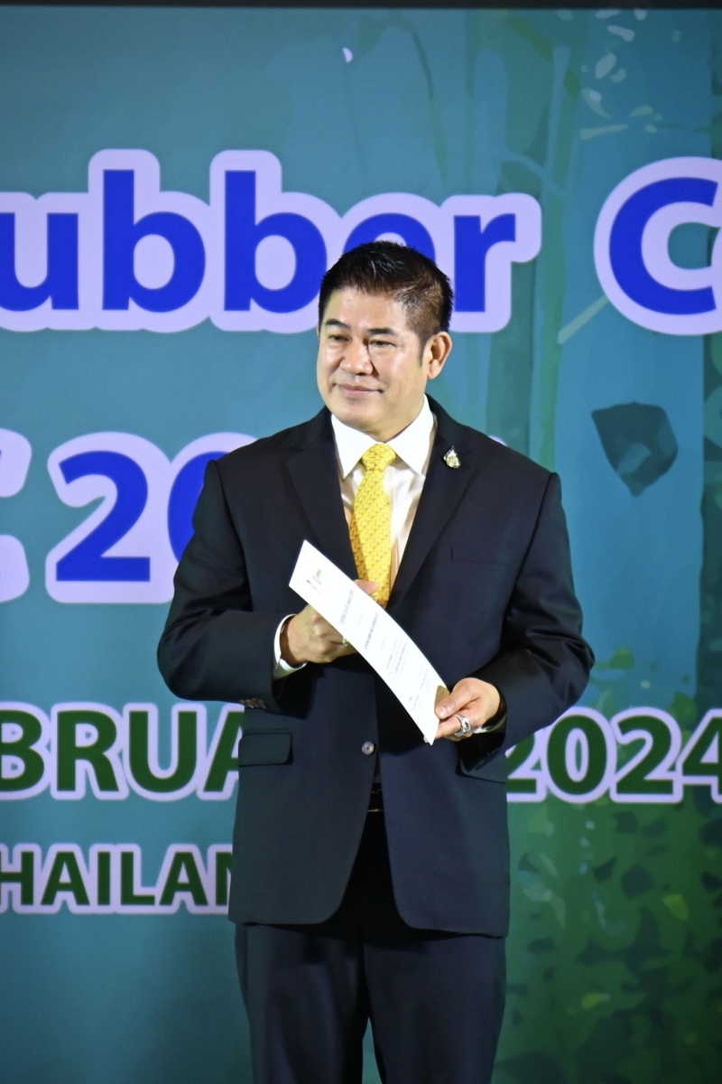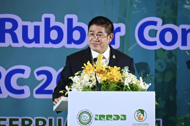 ร้อยเอก ธรรมนัส พรหมเผ่า รัฐมนตรีว่าการกระทรวงเกษตรและสหกรณ์ กล่าวว่า ประเทศไทยในฐานะประเทศสมาชิกที่เป็นผู้นำด้านการผลิตยางพารา และมีประวัติศาสตร์การทำเกษตรอย่างยาวนาน มีความมุ่งมั่นในการพัฒนาการเกษตรเพื่อความยั่งยืน โดยให้ความสำคัญและตระหนักถึงการกำหนดทิศทางในอนาคตของสินค้ายางพารา ซึ่งเป็นพืชที่สำคัญทางเศรษฐกิจของประเทศไทยและของโลก เวทีประชุมวิชาการครั้งนี้ จึงเป็นโอกาสอันดีในการแลกเปลี่ยนความคิดเห็น แบ่งปันความรู้ และความร่วมมือในการผลักดันให้เกิดความเปลี่ยนแปลงในอุตสาหกรรมยางพารา ภายใต้แนวคิด "จุดประกายเสริมสร้างนวัตกรรมยางพารามุ่งสู่อนาคตที่ยั่งยืน" ผ่านการนำนวัตกรรม และสำรวจแนวคิดใหม่ ๆ จากผู้เชี่ยวชาญที่มากประสบการณ์และนักวิจัยรุ่นเยาว์ พัฒนาสู่แนวทางปฏิบัติที่ยั่งยืน รับมือกับความท้าทายในภาคอุตสาหกรรมยางพาราที่กำลังเผชิญ ทั้งการเปลี่ยนแปลงของภูมิอากาศและความเสื่อมโทรมของสิ่งแวดล้อม เพื่อสามารถขับเคลื่อนวงการยางพาราทุกภาคส่วนในอนาคตได้อย่างมีประสิทธิภาพสูงสุด