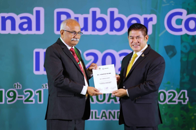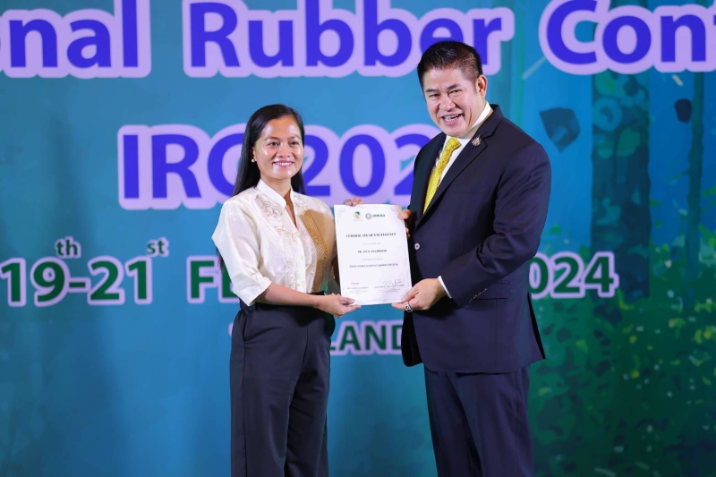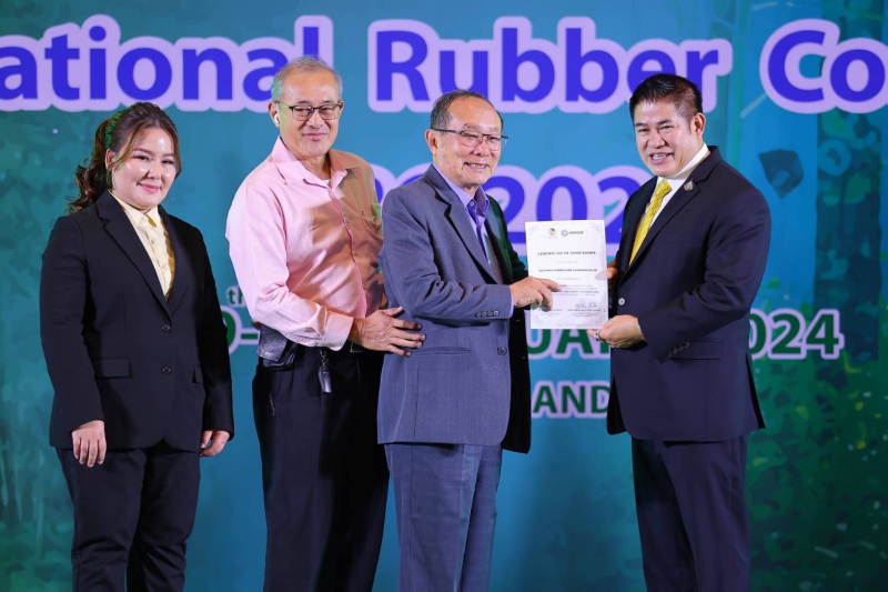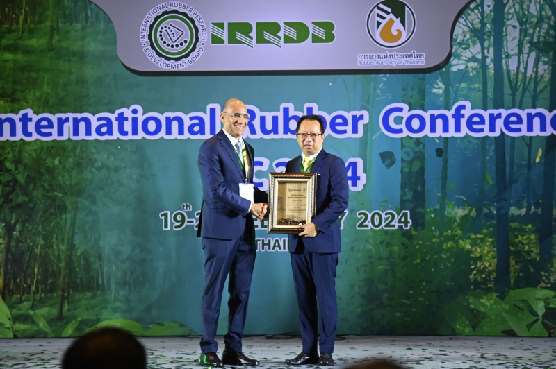 ร้อยเอก ธรรมนัส พรหมเผ่า รัฐมนตรีว่าการกระทรวงเกษตรและสหกรณ์ เป็นประธานเปิดการประชุมวิชาการยางระหว่างประเทศ (IRRDB International Rubber Conference : IRC 2024) ภายใต้แนวคิด “จุดประกายเสริมสร้างนวัตกรรมยางพารามุ่งสู่อนาคตที่ยั่งยืน” มุ่งผลักดันงานวิจัย - นวัตกรรม สู่การพัฒนาวงการยางตลอดห่วงโซ่อุปทาน ซึ่งจัดขึ้นโดยการยางแห่งประเทศไทย (กยท.) ร่วมกับสภาวิจัยและพัฒนายางระหว่างประเทศ (International Rubber Research and Development Board: IRRDB) ระหว่างวันที่ 19 - 21 กุมภาพันธ์ 2567 โดยมี นายประยูร อินสกุล ปลัดกระทรวงเกษตรและสหกรณ์ ตัวแทนหน่วยงานสถาบันวิจัยจาก 19 ประเทศสมาชิก ได้แก่ บังกลาเทศ บราซิล กัมพูชา แคเมอรูน จีน โกตดิวัวร์ ฝรั่งเศส กัวเตมาลา อินเดีย อินโดนีเซีย ไลบีเรีย มาเลเซีย เมียนมาร์ ไนจีเรีย ปาปัวนิวกินี ฟิลิปปินส์ ศรีลังกา เวียดนาม และไทย และผู้บริหารกระทรวงเกษตรและสหกรณ์ เข้าร่วม ณ โรงแรมดุสิตธานีพัทยา จ.ชลบุรี และศึกษาดูงานกระบวนการรวบรวมผลผลิตของกลุ่มเกษตรกรบางบุตร จ.ระยอง และการแปรรูปยางของสหกรณ์กองทุนสวนยางอำเภอบ่อทอง จำกัด จ.ชลบุรี นอกจากนี้ ภายในงาน รมว.เกษตรฯ ยังได้มอบแนวทางขับเคลื่อนอุตสาหกรรมยาง รับมือความท้าทายในทุกมิติ และมอบรางวัลด้านต่าง ๆ ได้แก่ รางวัลผู้อุทิศตนให้กับงานด้านอุตสาหกรรมยางพารามาอย่างยาวนาน รางวัลผลงานงานวิจัยดีเด่น 2024 รางวัลนักวิทยาศาสตร์รุ่นเยาว์ 2024 (สาขาต้นน้ำ/ปลายน้ำ) และการมอบใบประกาศให้กับสมาชิกสมทบ IRRDB จากภาคเอกชนด้วย