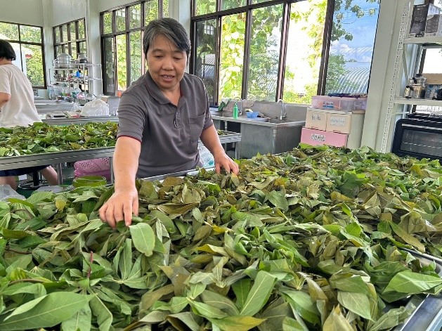 ผู้ช่วยศาสตราจารย์ ฐิฏิกานต์ สุริยะสาร กล่าวเพิ่มเติมในฐานะหัวหน้าโครงการวิจัยฯ ว่า คณะผู้วิจัยฯ ได้ลงพื้นที่คัดเลือกฟาร์มต้นแบบในพื้นที่บ้านผาแดง จ.ลำปาง จำนวน 3 ฟาร์ม ได้แก่ ขุนงาวฟาร์ม วรางคณาฟาร์ม รัตน์บ้านสวนฟาร์ม เป็นฟาร์มนำร่องดำเนินโครงการฯ เนื่องจากกลุ่มเกษตรกรผู้เลี้ยงจิ้งหรีดพื้นที่บ้านผาแดงประสบปัญหาการเลี้ยงจิ้งหรีดที่ได้ผลผลิตน้อย โตช้า ตายมาก และมีค่าอาหารสูง ทางคณะฯ จึงได้ค้นหาพืชที่มีอยู่ทั่วไป หาได้ง่าย และมีราคาถูกในพื้นที่มาทดลองทำอาหารสำหรับเลี้ยงจิ้งหรีด พบว่าชาวบ้านในพื้นที่บ้านผาแดงปลูกต้นมันสำปะหลังและทิ้งหรือเผาใบมันเป็นจำนวนมาก จึงได้ทดลองนำใบมันสำปะหลังแป็นวัสดุเหลือใช้ทางการเกษตรมาทำการทดลอง โดยใช้ใบมันสับปะหลังบดผงทดแทนอาหารสำเร็จรูปที่จำหน่ายในท้องตลาด ในปริมาณที่แตกต่างกัน โดยผลการทดลองพบว่าสูตรที่เหมาะสมมี 2 สูตร ได้แก่ สูตรอาหารที่ประกอบด้วยอาหารจิ้งหรีดสำเร็จรูปคิดเป็นร้อยละ 70 และมีใบมันสำปะหลังที่ผ่านกระบวนอบแห้งเรียบร้อยแล้วคิดเป็นร้อยละ 30 ทำให้สามารถเก็บผลผลิตจิ้งหรีดได้ภายใน 43 - 45 วัน และ สูตรที่ประกอบด้วยอาหารจิ้งหรีดสำเร็จรูปทางการค้าคิดเป็นร้อยละ 80 และมีใบมันสำปะหลังที่ผ่านกระบวนเรียบร้อยแล้วคิดเป็นร้อยละ 20 สามารถเก็บได้ภายในระยะเวลา 45 - 50 วัน โดยสูตรอาหารเลี้ยงจิ้งหรีดทั้ง 2 สูตรสามารถผลิตจิ้งหรีดที่มีปริมาณไขมัน ปริมาณโปรตีน ปริมาณใยอาหาร ปริมาณเถ้า ปริมาณคาร์โบไฮเดรต ปริมาณไคติน ปริมาณแคโรทีนอยด์ ปริมาณคลอโรฟิลล์เอ ปริมาณคลอโรฟิลล์บี ไม่มีคอเลสเตอรอลและไม่มีไซยาไนด์ ส่งผลให้ต้นทุนในการเลี้ยงจิ้งหรีดลดลงร้อยละ 30 และ 20 ตามลำดับ และจากการนำไปทดลองเลี้ยงเป็นระยะเวลา 1 ปี พบว่า ทั้ง 3 ฟาร์ม พึงพอใจกับสูตรอาหารเป็น อย่างมาก สามารถผลิตจิ้งหรีดได้ขนาด 3 นิ้ว ภายในระยะเวลา 45 วัน ช่วยร่นระยะเวลาการเลี้ยงจากปกติ 50 – 60 วัน ทำให้ต้นทุนด้านอาหารลดลงได้มากถึงประมาณ 6,200 บาทต่อปี สร้างรายได้รวมกว่า 273,000 บาทต่อปี ที่สำคัญโครงการยังมีส่วนช่วยลดการเผาใบมันสับปะหลังที่สร้างปัญหาฝุ่นควันในพื้นที่ได้อย่างมาก