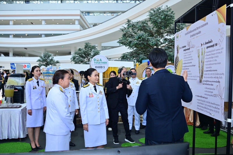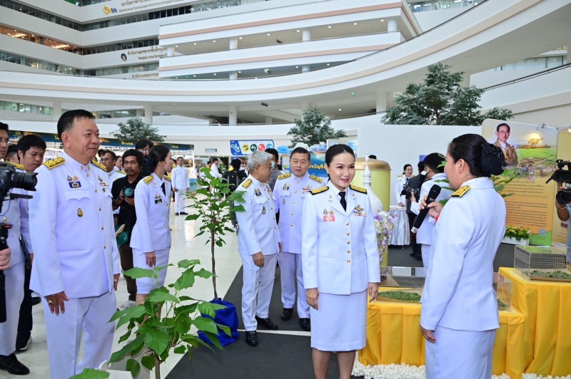 ทั้งนี้ ตลอดการจัดงาน ยังมีการจำหน่ายสินค้าและผลิตภัณฑ์ทางการเกษตรอีกมากกว่า 70 ร้านค้า เป็นผลิตภัณฑ์สินค้า OTOP ซึ่งมีทั้งผัก ผลไม้ อาหารสด และอาหารแปรรูปทางการเกษตร มาจำหน่ายให้ประชาชนในราคาประหยัด รวมทั้งยังมีกิจกรรมการสาธิตเสริมสร้างอาชีพจากหน่วยงานในสังกัดกระทรวงเกษตรและสหกรณ์ อาทิ สาธิตการแปรรูปผลิตภัณฑ์ปศุสัตว์ การทำพวงกุญแจ การทำซูชิข้าวก่ำล้านนา การทำน้ำหมักจุลินทรีย์ (พด.6) สารเร่งซุปเปอร์ (พด.2) และการทำแบคทีเรียสังเคราะห์แสง (พด.15) ซึ่งในวันพรุ่งนี้ (15 พฤศจิกายน 2567) เป็นวันสุดท้ายขอเชิญชวนทุกท่านมาเที่ยวชมงาน และร่วมกันน้อมรำลึกถึงพระมหากรุณาธิคุณอันหาที่สุดมิได้ขององค์พระบิดาแห่งฝนหลวงร่วมกัน และหลังจากนี้จะนำนิทรรศการไปจัดที่บริเวณด้านหน้ากระทรวงเกษตรและสหกรณ์ และที่กรมฝนหลวงและการบินเกษตร เพื่อให้พี่น้องประชาชนที่สนใจได้เข้าชมและศึกษาความเป็นมาต่อไป