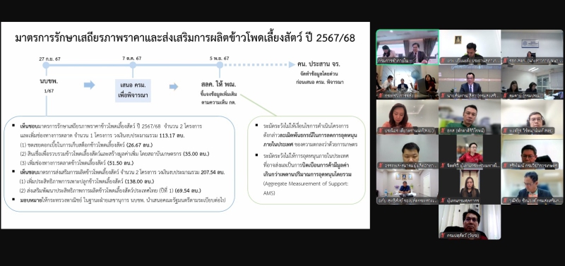เมื่อวันที่ 14 พฤศจิกายน 2567 นายอภัย สุทธิสังข์ รองปลัดกระทรวงเกษตรและสหกรณ์ เข้าร่วมการประชุมคณะกรรมการนโยบายและบริหารจัดการข้าวโพดเลี้ยงสัตว์ (นบพข.) ครั้งที่ 2/2567 ผ่านสื่ออิเล็กทรอนิกส์ Zoom Meeting
