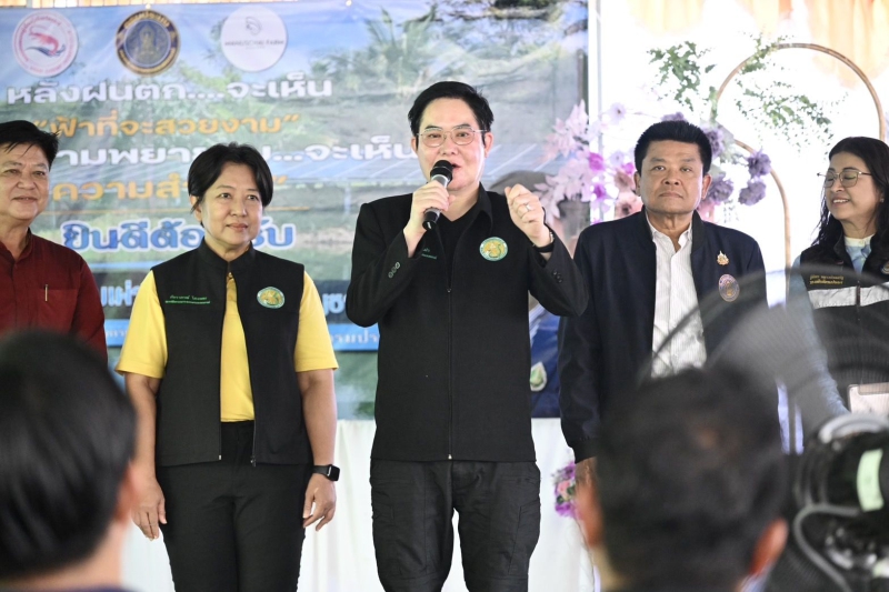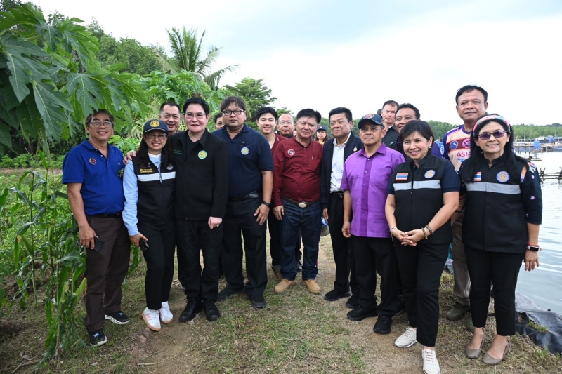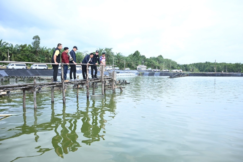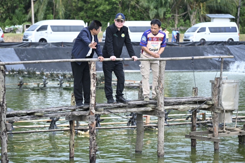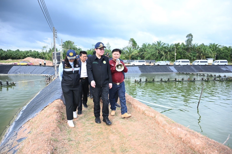 จากนั้นรัฐมนตรีช่วยว่าการกระทรวงเกษตรและสหกรณ์ และคณะ ได้เยี่ยมชมฟาร์มเลี้ยงกุ้งทะเล ณ มนัสชัยฟาร์ม 2 ต.คลองขนาน อ.เหนือคลอง จ.กระบี่ เพื่อเยี่ยมชมฟาร์มต้นแบบที่ประสบความสำเร็จในการนำระบบโซล่าร์เซลล์มาใช้เป็นพลังงานทดแทนภายในฟาร์มเลี้ยงกุ้งทะเล ร่วมกับการเลี้ยงแบบ Zero waste โดยนำดินเลนจากบ่อเลี้ยงกุ้งมาปลูกพืชผักสวนครัว และการใช้จุลินทรีย์ทดแทนการใช้สารเคมีระหว่างการเลี้ยง