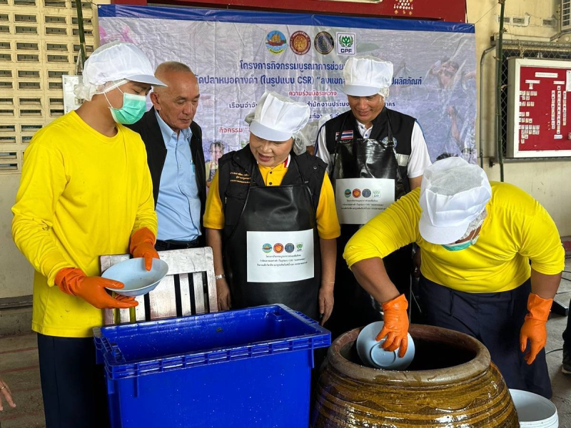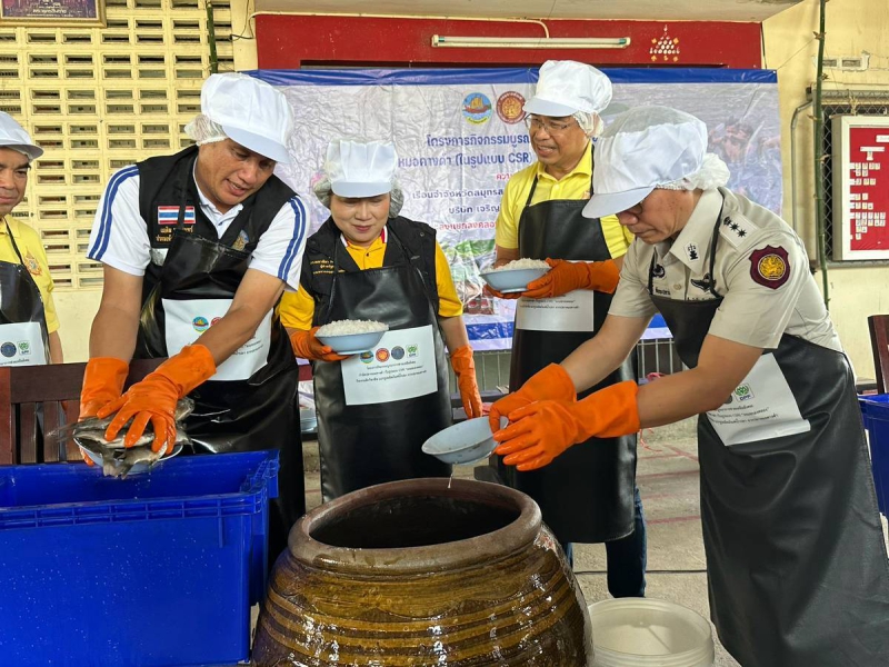 วันที่ 11 มี.ค.68 ที่เรือนจำจังหวัดสมุทรสาคร ต.โกรกกราก อ.เมืองฯ จ.สมุทรสาคร ดร.ณมาณิตา กลับบ้านเกาะ ผู้ช่วยรัฐมนตรีประจำกระทรวงเกษตรและสหกรณ์ เป็นประธานเปิดกิจกรรมฝึกอาชีพ แปรรูปผลิตภัณฑ์น้ำปลา จากปลาหมอคางดำ โดยมี นายวีระศักดิ์ สัจจะปกาสิต ผู้อำนวยการส่วนพัฒนาผู้ต้องขัง เรือนจำจังหวัดสมุทรสาคร นายเผดิม รอดอินทร์ ประมงจังหวัดสมุทรสาคร หัวหน้าส่วนราชการที่เกี่ยวข้อง พร้อมด้วย ภาคเอกชน และผู้ต้องขัง เข้าร่วมกิจกรรม