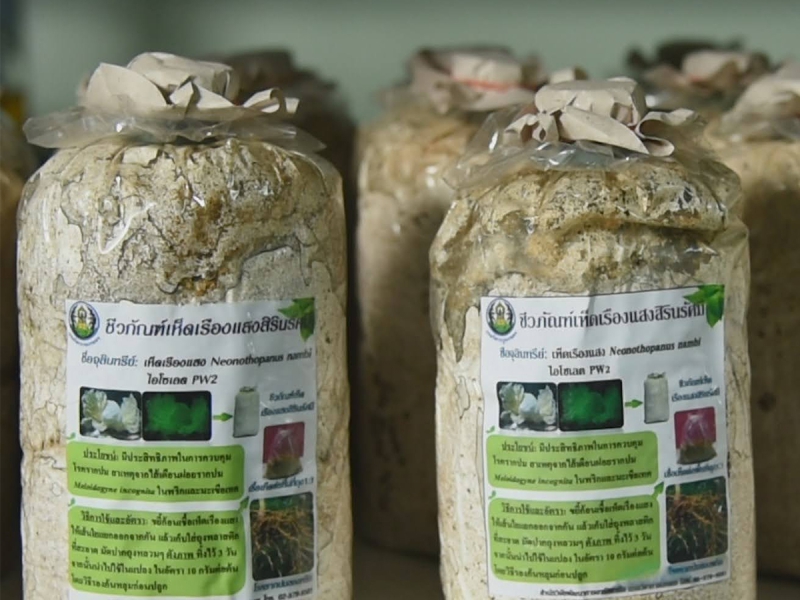 สำนักวิจัยพัฒนาการอารักขาพืช กรมวิชาการเกษตร เดินหน้าพัฒนาเทคโนโลยีชีวภาพเพื่อควบคุมโรคที่เป็นอุปสรรคต่อการผลิตทุเรียนของเกษตรกร โดยนำ “เห็ดเรืองแสงสิรินรัศมี” (Neonothopanus nambi (Speg.) R.H. Petersen & Krisai) ซึ่งเป็นเชื้อราปฏิปักษ์ที่มีประสิทธิภาพในการยับยั้งการเจริญเติบโตของเชื้อราสาเหตุโรค มาใช้เป็นทางเลือกแทนสารเคมีทางการเกษตร นับเป็นอีกก้าวสำคัญของการประยุกต์ใช้เทคโนโลยีชีวภาพในภาคเกษตร ที่ช่วยควบคุมโรคพืชได้อย่างมีประสิทธิภาพ พร้อมทั้งส่งเสริมระบบการผลิตที่ยั่งยืน ส่งผลให้ได้ผลผลิตที่มีคุณภาพ เป็นมิตรต่อสิ่งแวดล้อม และช่วยเสริมสร้างความเข้มแข็งให้แก่ชุมชน ตอบโจทย์นโยบายการยกระดับภาคการเกษตรของไทย