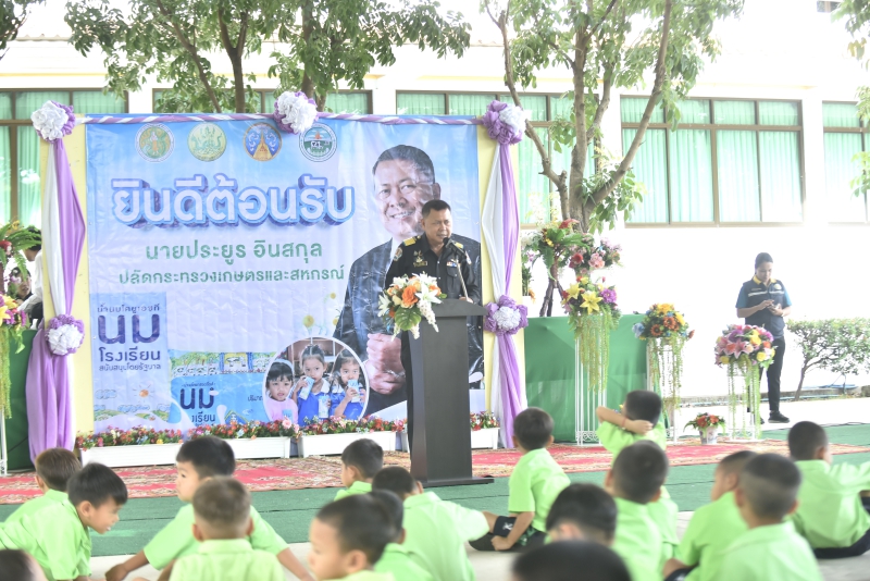 นายประยูร อินสกุล ปลัดกระทรวงเกษตรและสหกรณ์ เปิดเผยภายหลังเป็นประธานเปิดโครงการอาหารเสริม (นม) โรงเรียน ปีการศึกษา 2568 และแจกนมโรงเรียนแก่นักเรียนโรงเรียนวัดบึงลาดสวาย โดยมี นางสาวอโรชา นันทมนตรี ผู้ว่าราชการจังหวัดนครปฐม นางสาวเอื้องพร นพคุณ เกษตรและสหกรณ์จังหวัดนครปฐม คณะครู-อาจารย์ นักเรียนโรงเรียนวัดบึงลาดสวาย และผู้แทนหน่วยงานที่เกี่ยวข้องร่วมกิจกรรม ณ โรงเรียนวัดบึงลาดสวาย ต.บางภาษี อ.บางเลน จ.นครปฐม ว่า คณะกรรมการอาหารนมเพื่อเด็กและเยาวชน ได้ประกาศผลการจัดสรรสิทธิและพื้นที่จำหน่ายของโครงการอาหารเสริม (นม) โรงเรียน ประจำปีการศึกษา 2568 ของทั้ง 7 กลุ่มพื้นที่ รวมทั้งเร่งรัดการจัดส่งนมโรงเรียนพร้อมกันทั่วประเทศ ซึ่งในวันนี้กระทรวงเกษตรและสหกรณ์ โดยหน่วยงานในพื้นที่ที่เกี่ยวข้องได้จัดส่งนมโรงเรียนให้แก่เด็กนักเรียนทุกคนได้ดื่มนมกันอย่างพร้อมเพรียงทั้ง 7 กลุ่มพื้นที่เป็นที่เรียบร้อยแล้ว ซึ่งเป็นวัตถุประสงค์หลักของโครงการฯ ที่ต้องการให้นักเรียนทั้งประเทศได้ดื่มนม โดยที่เกษตรกรผู้เลี้ยงโคนมสามารถผลิตขายน้ำนมโคที่มีคุณภาพและมีความยั่งยืนในอาชีพ เพื่อสร้างศักยภาพ ความเข้มแข็งให้กับสหกรณ์โคนม รัฐวิสาหกิจและสถาบันการศึกษาในการดำเนินกิจการผลิตนมในลำดับแรก ซึ่งจะเกิดความมั่นคงทางอาหารของประเทศ โดยที่ผู้ประกอบการผลิตภัณฑ์นมได้รับการจัดสรรสิทธิและพื้นที่การจำหน่ายอย่างเหมาะสมและเป็นธรรม ปัจจุบันผู้ประกอบการผลิตภัณฑ์นมเริ่มจัดส่งนมให้แก่โรงเรียนเป้าหมายในแต่ละกลุ่มพื้นที่เรียบร้อยแล้ว