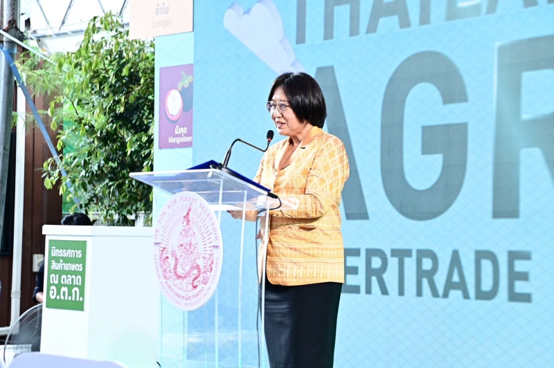 นางสาวภัทราภรณ์ โสเจยยะ รองปลัดกระทรวงเกษตรและสหกรณ์ เป็นประธานพิธีเปิดงาน “Thailand Agri Intertrade 2025” ที่กำหนดจัดขึ้นระหว่างวันที่ 24 – 27 กรกฎาคม 2568 ณ ตลาด อ.ต.ก. ถนนกำแพงเพชร กรุงเทพฯ ที่รวบรวมสินค้าเกษตรพรีเมียมจากเกษตรกรทั่วประเทศมาไว้ให้ผู้บริโภคเลือกซื้อได้อย่างสะดวกในราคาสุดพิเศษกว่า 40 บูธ มาจัดแสดงและจัดจำหน่าย พร้อมสัมผัสบรรยากาศการตลาดแบบ “Market Experience” ที่รวมไว้ทั้งสินค้า รสชาติ วิถีชีวิต และวัฒนธรรม เพื่อสร้างความสัมพันธ์ระหว่างเกษตรกรและผู้บริโภคให้แน่นแฟ้นยิ่งขึ้น ผ่านกิจกรรมที่น่าสนใจมากมายให้ผู้บริโภคได้เพลิดเพลินอิ่มท้องและอิ่มใจตั้งแต่เวลา 10.00 – 18.00 น. ตลอด 4 วันเต็ม ไม่ว่าจะเป็น คอนเสิร์ตจากศิลปินชื่อดัง อาทิ ก้านตอง ทุ่งเงิน กุ้ง สุทธิราช และตรี ชัยณรงค์ รวมถึงการโชว์ตัวจากหมูแฮม นางสาวไทยปี 2568 การแสดงมายากล การแสดงกายกรรมคอมมาดี้ การเสวนาการเลือกซื้อสินค้าเกษตร กิจกรรมช้อปผลไม้นาทีทอง การแข่งขันปอกผลไม้ และบุฟเฟ่ต์ทุเรียนสุดฟิน เป็นต้น