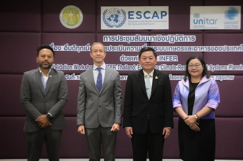 นายถาวร ทันใจ รองปลัดกระทรวงเกษตรและสหกรณ์ ในฐานะ National Convenor ของประเทศไทย เป็นประธานเปิดการประชุมสัมมนาเชิงปฏิบัติการ เรื่อง อิ่มดีทุกเมื่อ: การประเมินความเสี่ยงระบบเกษตรและอาหารของประเทศไทยด้วยเครื่องมือ INFER (Validation Workshop on INFER Thailand: Enhancing Climate-Resilient Food Systems Planning) ซึ่งจัดขึ้นโดยความร่วมมือระหว่างกระทรวงเกษตรและสหกรณ์ คณะกรรมาธิการเศรษฐกิจและสังคมแห่งเอเชียและแปซิฟิกของสหประชาชาติ (ESCAP) และศูนย์ดาวเทียมแห่งสหประชาชาติ (UNITAR-UNOSAT) โดยมี Mr. Lorenzo Santucci, Chief, Environment and Development Section, ESCAP (นายลอเรนโซ แซนทูชี) และ Mr. Khaled Mashfiq, Regional Lead, UNITAR-UNOSAT (นายคาห์เล็ด มาชฟิก) ณ โรงแรมเดอะ สุโกศล กรุงเทพฯ ในการประชุมครั้งนี้มีวัตถุประสงค์เพื่อนำเสนอและตรวจสอบความถูกต้องของเครื่องมือ INFER Thailand ซึ่งเป็นนวัตกรรมการวิเคราะห์เชิงข้อมูล (data-driven tool) สำหรับการระบุพื้นที่เสี่ยง (risk hotspots) วิเคราะห์จุดเปราะบางของระบบอาหาร และสนับสนุนการวางแผนรับมือที่มีเป้าหมายชัดเจนและสอดประสานกันในทุกระดับ เพื่อเสริมสร้างความยืดหยุ่นของระบบอาหารไทยต่อผลกระทบจากการเปลี่ยนแปลงสภาพภูมิอากาศ