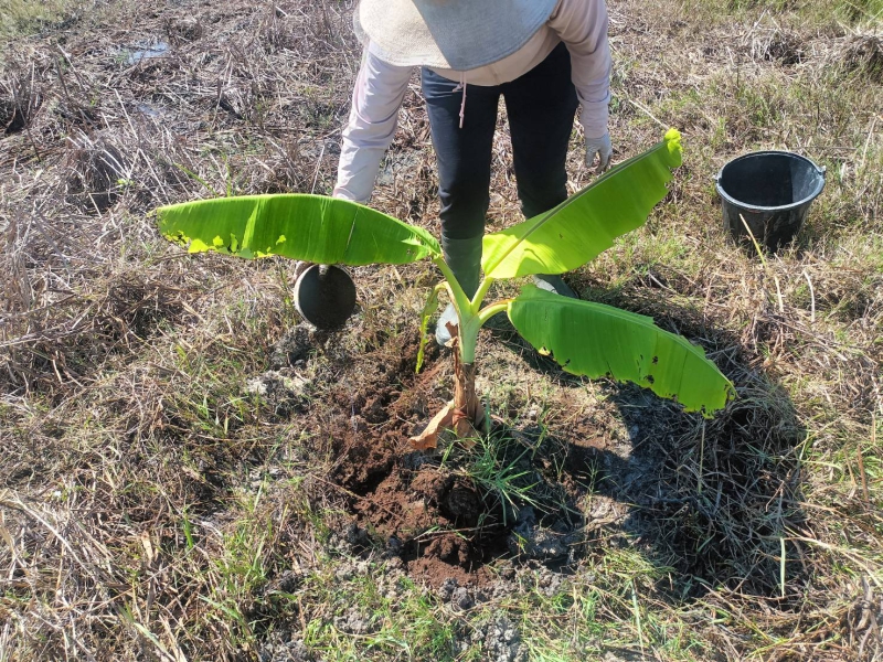 นายอุดมพร เสือมาก ผู้อำนวยการศูนย์วิจัยและพัฒนาการเกษตรนครศรีธรรมราช กล่าวว่า ได้ให้คำแนะนำเกษตรกรใช้ ปุ๋ยชีวภาพละลายฟอสเฟต รองก้นหลุม อัตรา 10 กรัม/หลุม หรือ โรยรอบทรงพุ่ม อัตรา 50-100 กรัม/ต้น โดยคลุกผสมกับปุ๋ยอินทรีย์โรยรอบทรงพุ่มแล้วกลบดิน ส่วนปุ๋ยชีวภาพอาร์บัสคูลาร์ไมคอร์ไรซา ให้รองก้นหลุม อัตรา 10 กรัม/ต้น หรือ โรยรอบทรงพุ่ม อัตรา 20-50 กรัม/ต้น แล้วพรวนดินกลบ ตัดแต่งหน่อหลังปลูกประมาณ 3-4 เดือนหลังปลูก และประมาณ 7-8 เดือน หลังปลูกควรมีการไว้หน่อทดแทน 1-2 หน่อ โดยหน่อที่ 1 และที่ 2 ควรมีอายุห่างกันประมาณ 4 เดือน โดยเลือกหน่อที่อยู่ในทิศทางที่ตรงกันข้าม พร้อมกับให้คำแนะนำให้ตัดแต่งใบให้เหลือประมาณ 7–12 ใบ ต่อกอ เพื่อช่วยป้องกันการโค่นล้มของต้นกล้วยในช่วงออกปลี