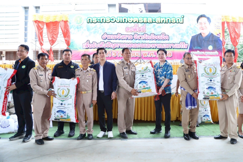 สำหรับกิจกรรมภายในงาน ได้มีการมอบพันธุ์ปลา อาทิ ปลาบึก กุ้งก้ามกราม สวาย และปลาหรด พันธุ์ผัก 4 ชนิด ไข่ไก่ ชุด 4 ฟอง พันธุ์หม่อน ปุ๋ยอินทรีย์อัดเม็ดสูตรน้ำหมักปลาหมอคางดำ เป็นต้น พร้อมรับฟังปัญหาจากเกษตรกรและประชาชนในพื้นที่ อาทิ ปัญหาที่ดินทำกิน และการพัฒนาแหล่งน้ำ เป็นต้น ทั้งนี้ ได้มอบหมายทุกหน่วยงานในสังกัด บูรณาการการทำงานร่วมกับท้องที่ท้องถิ่น ดำเนินการแก้ไขปัญหาในส่วนที่เกี่ยวข้องต่อไป