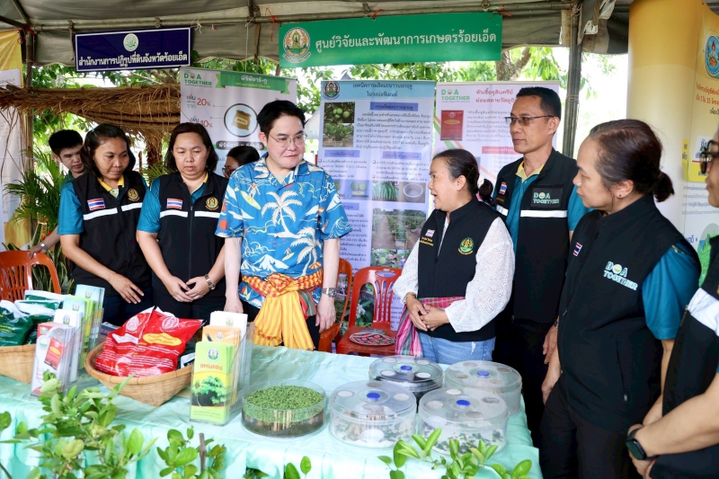จากนั้นรัฐมนตรีช่วยว่าการกระทรวงเกษตรและสหกรณ์ และคณะ ได้เดินทางไปยังแหล่งน้ำหนองกู่ บ้านกู่ ต.มะอึ อ.ธวัชบุรี จ.ร้อยเอ็ด เพื่อพบปะเกษตรกร พร้อมมอบปัจจัยการผลิตทางการเกษตร ทั้งพันธุ์พืช และพันธุ์ปลาชนิดต่าง ๆ โดยได้ปล่อยพันธุ์ปลาลงแหล่งน้ำหนองกู่ เพื่อให้ประชาชนมีแหล่งอาหารตามธรรมชาติ และสามารถจับสัตว์น้ำเป็นอาชีพเสริมในอนาคตได้ต่อไป